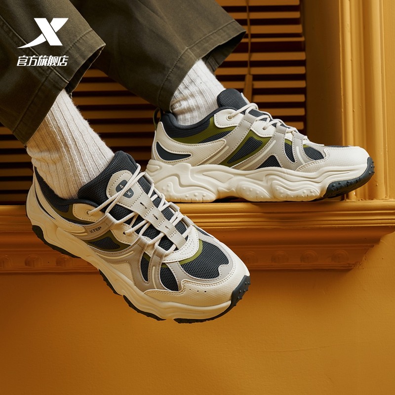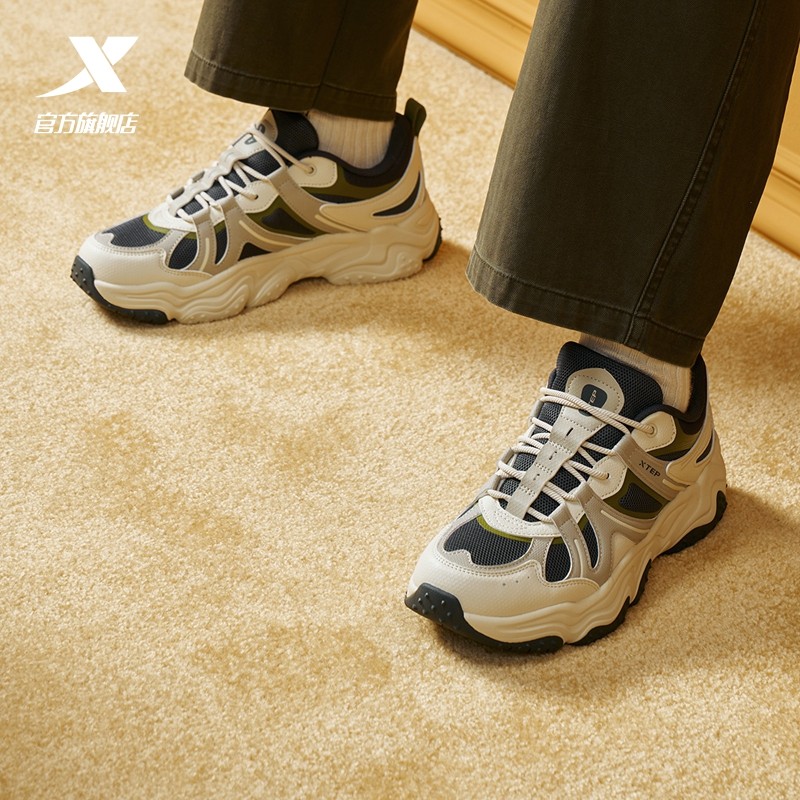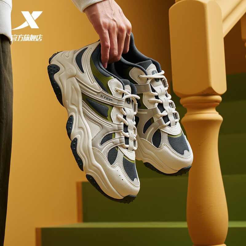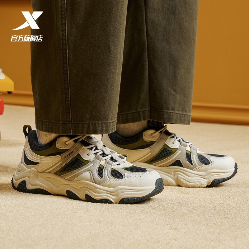 特步火山V2男鞋休闲鞋冬季革网正品复古老爹鞋轻便户外运动鞋女鞋