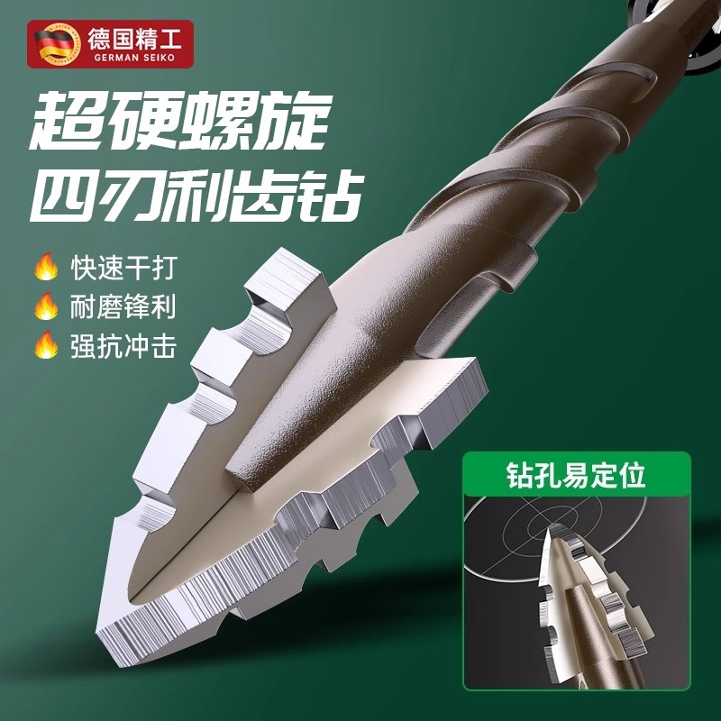 新款四刃利齿钻超硬钨钢合金螺旋偏心钻头瓷砖混凝土专用打孔钻头