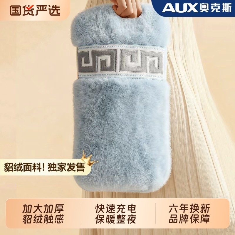 奥克斯电热水袋充电貂绒暖水袋暖手宝暖宝宝防爆暖脚2025新款毛绒