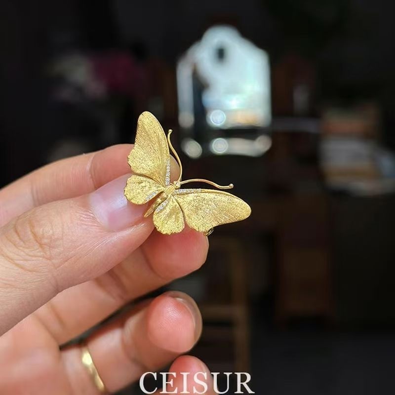 复古金色拉丝蝴蝶胸针轻奢精致小众高级西服礼服大衣胸花别针配饰