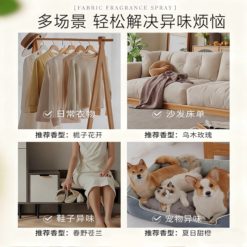 衣物香氛喷雾衣服空气清新剂除味剂淡香去异味除螨神器留香除臭