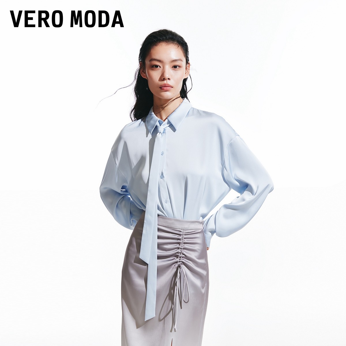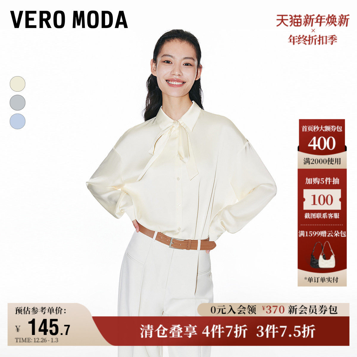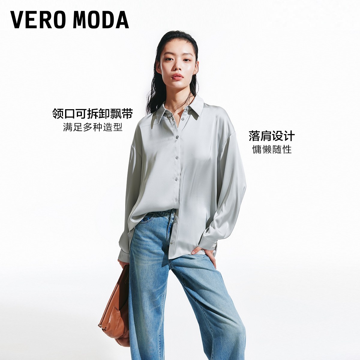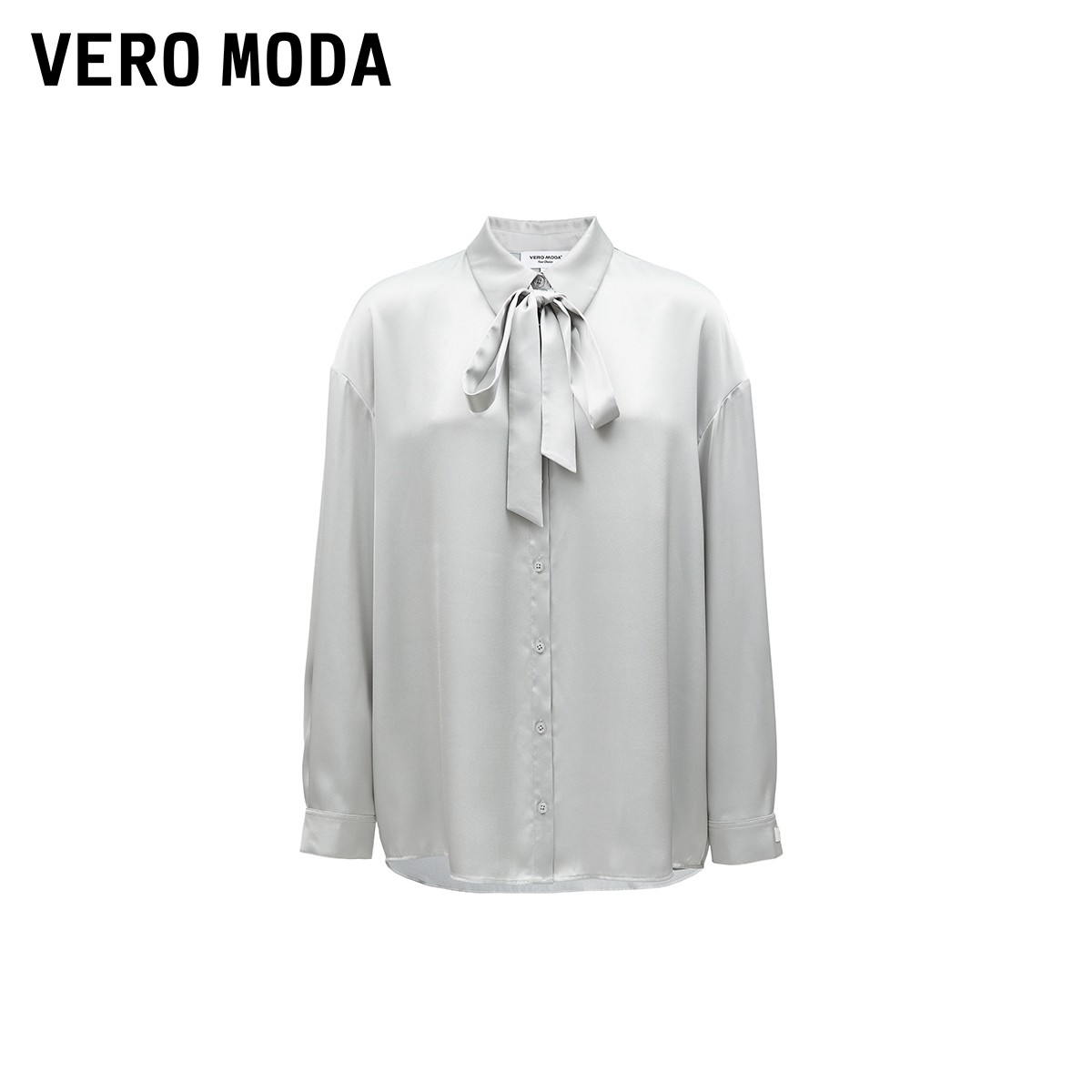Vero Moda奥莱衬衫女秋冬新款可拆卸飘带灵动飘逸光泽感气质上衣