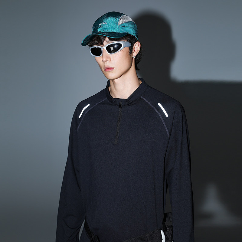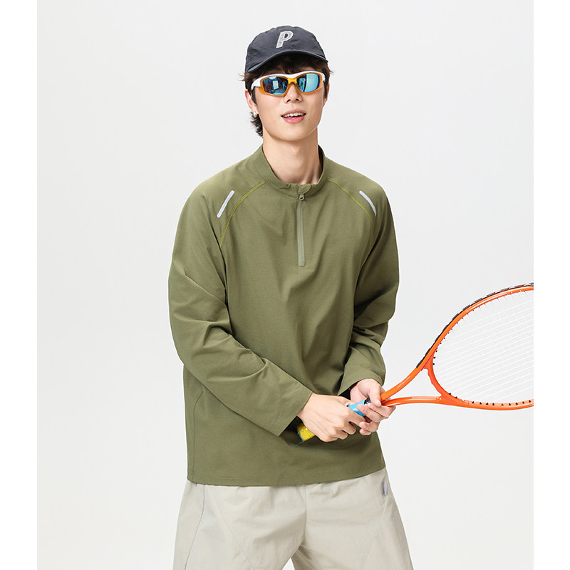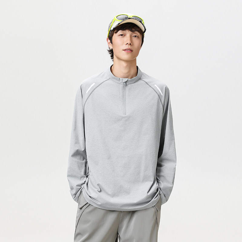 回力户外速干轻量化骑行长袖T恤男春秋吸湿抗紫外线半拉链上衣服