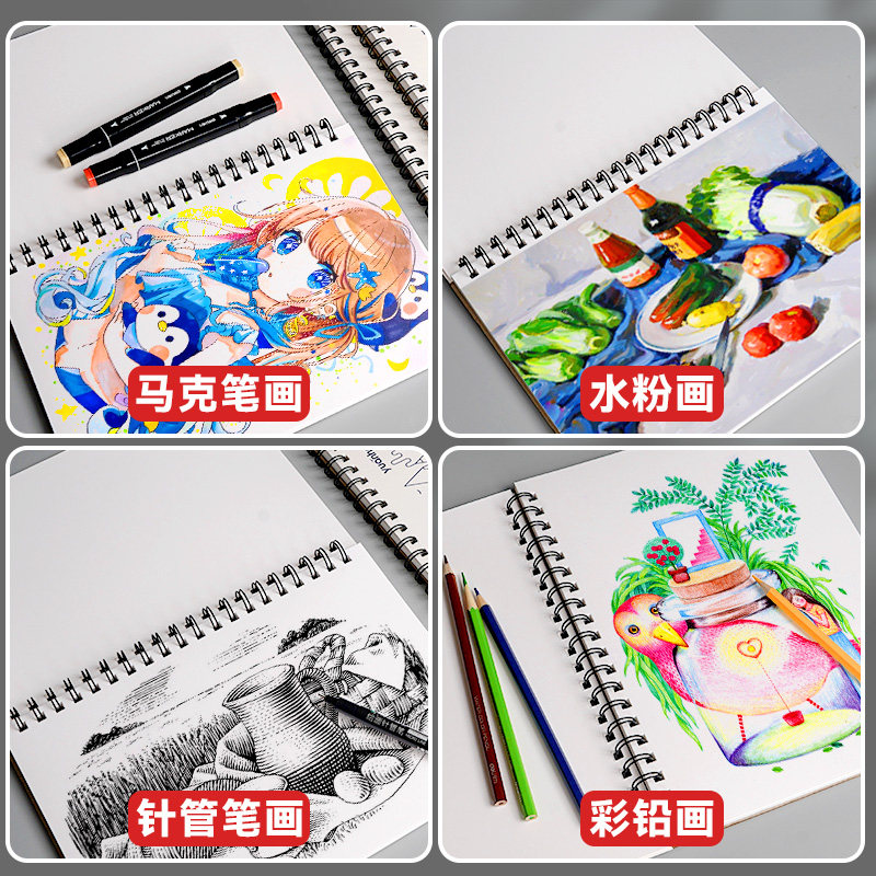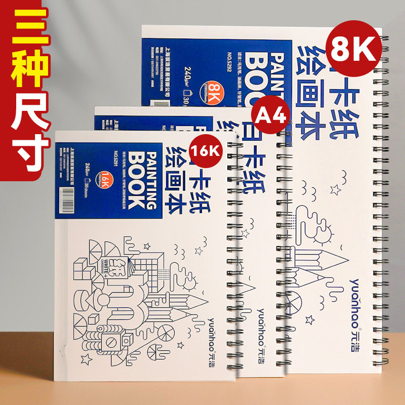 元浩荷兰白卡纸绘画本A4画画卡纸本学生美术专用画本8k手绘丙烯马克笔图画本a3彩铅16k油画棒加厚钢笔速写本