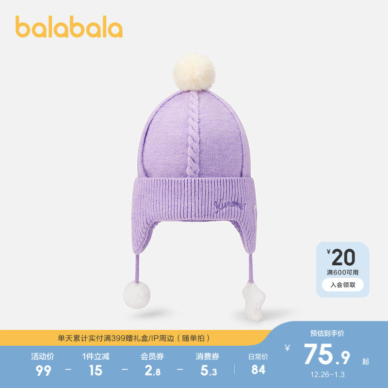 【三丽鸥IP商场同款】巴拉巴拉儿童帽子女童护耳帽保暖帽舒适可爱