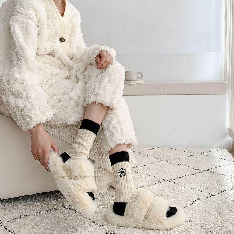 珊瑚绒袜子女秋冬季中筒袜女生冬天居家睡眠月子袜加绒加厚地板袜