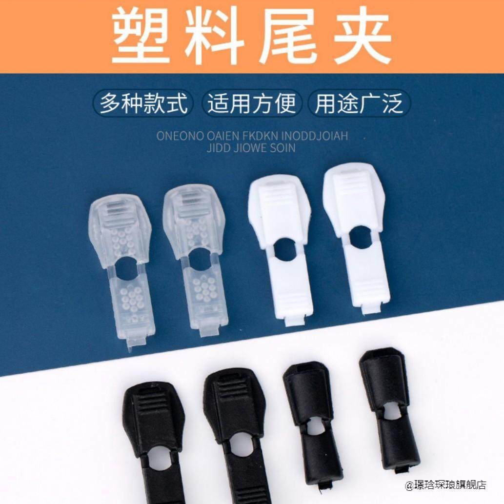 尼龙绳尾夹箱包免系鞋带衣服绳夹单孔防滑棉绳黑白色松紧带固定器