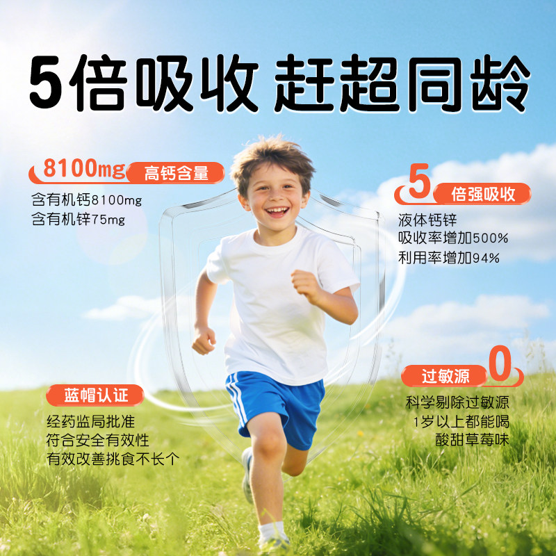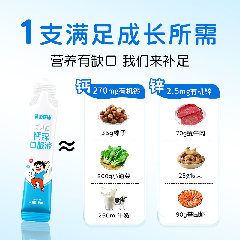 黄金搭档钙锌口服液儿童成长补钙青少年柠檬酸液体钙铁锌成长钙片
