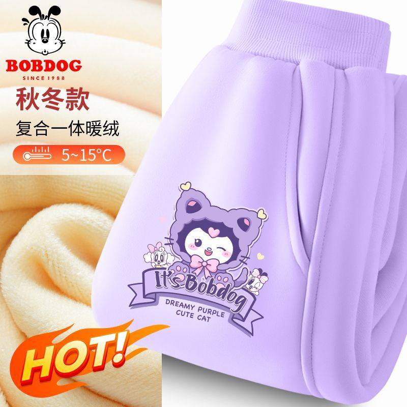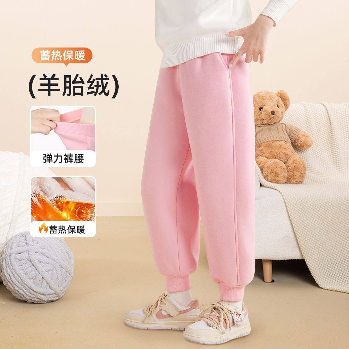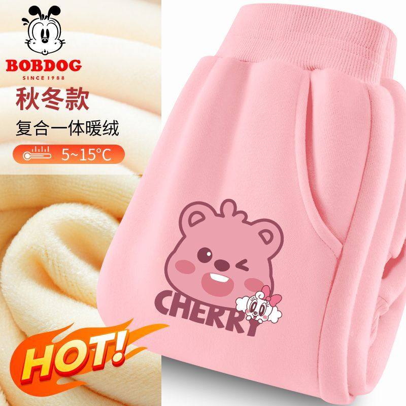 巴布豆女童加绒裤子加厚儿童卫裤秋冬2025新款宝宝运动裤洋气冬装