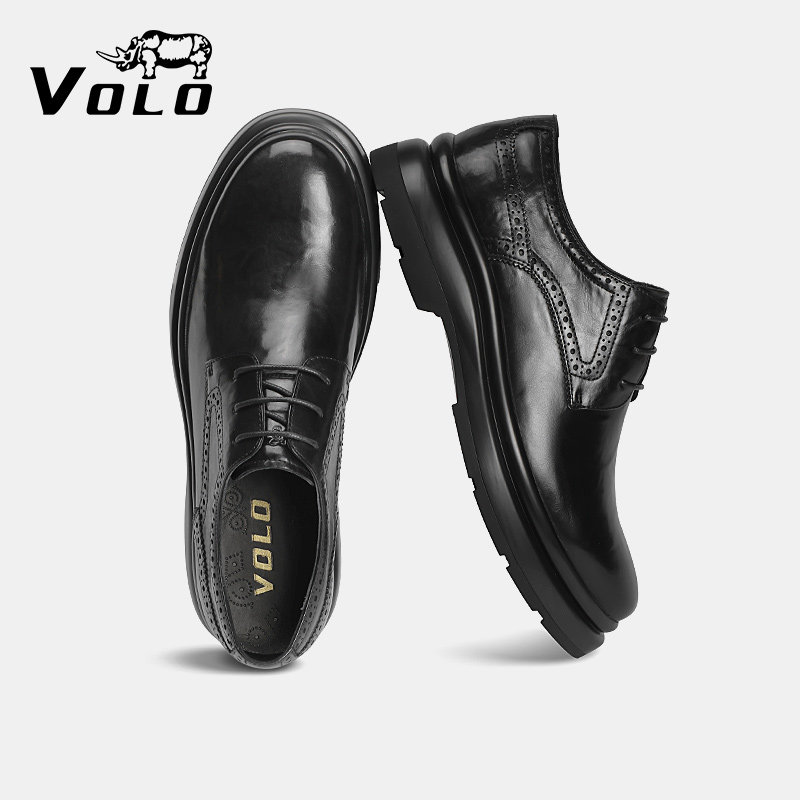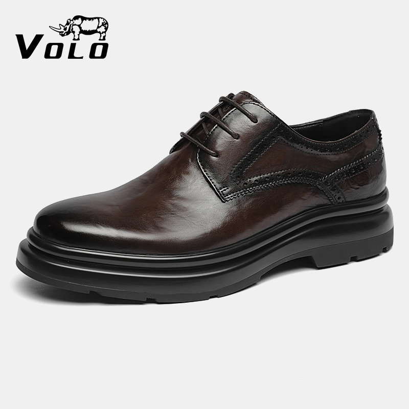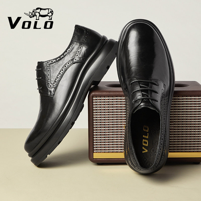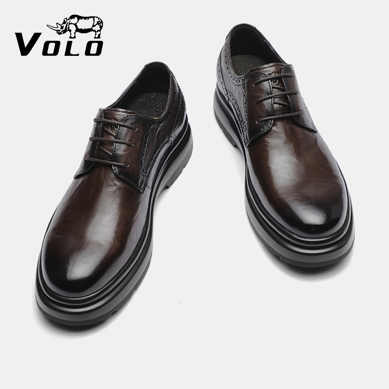 VOLO犀牛男士正装皮鞋男款商务皮鞋男结婚增高厚底软底真皮德比鞋