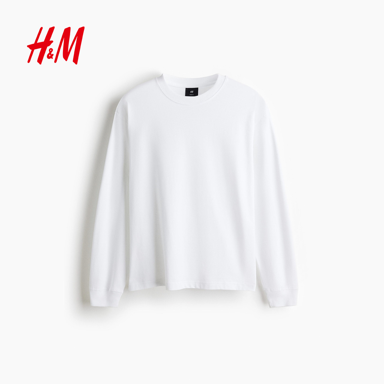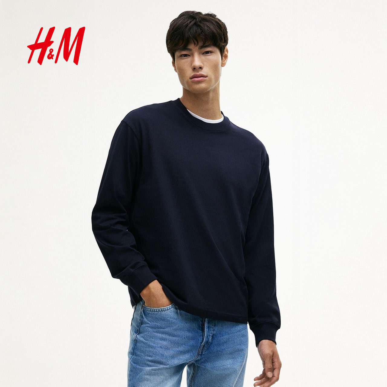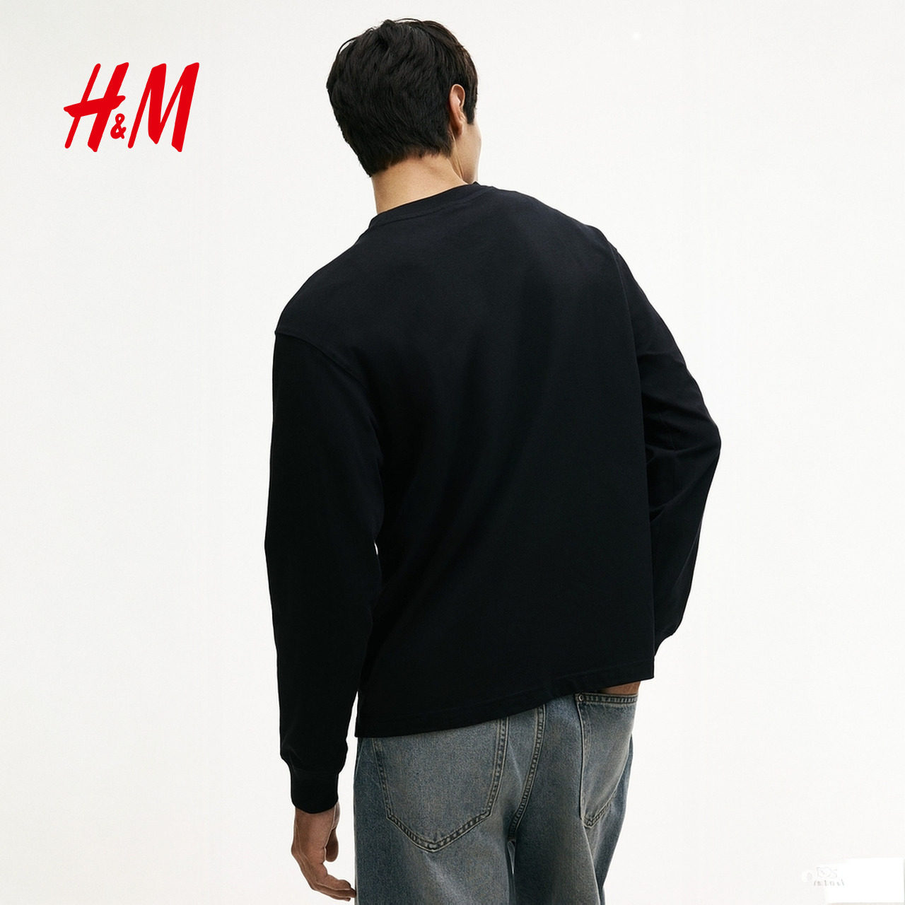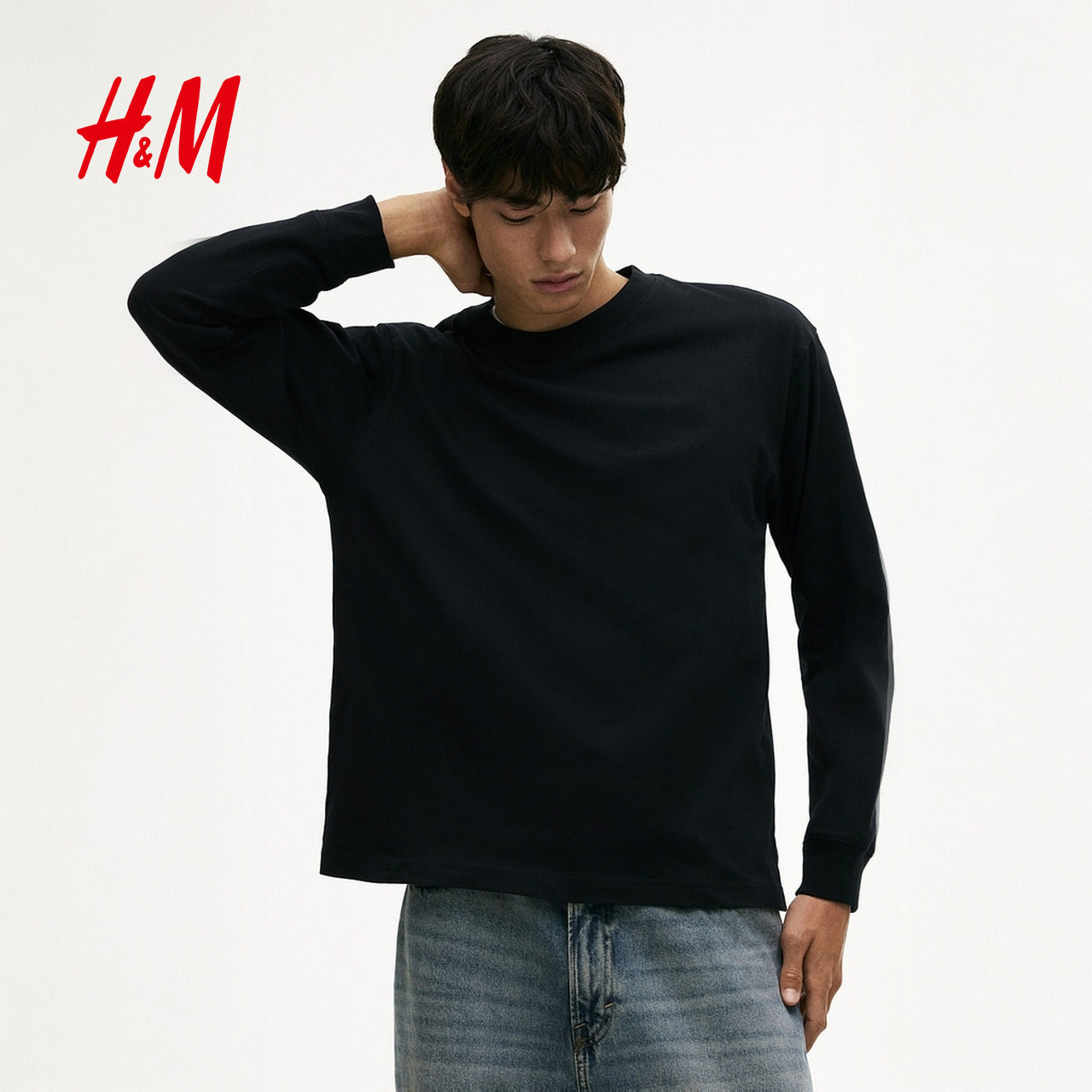 HM男装T恤2025冬季新款宽松版型长袖内搭汗布上衣打底衫1302376