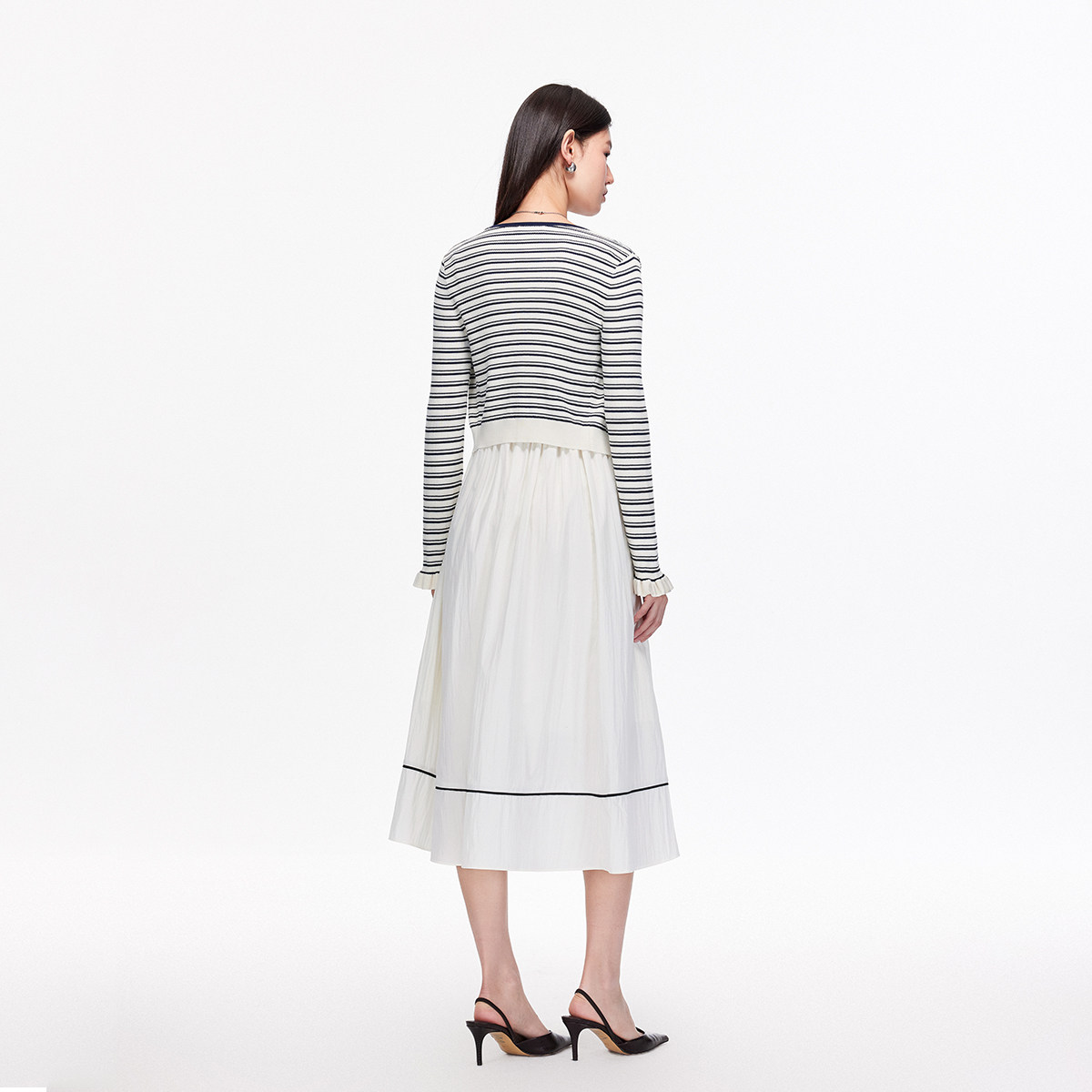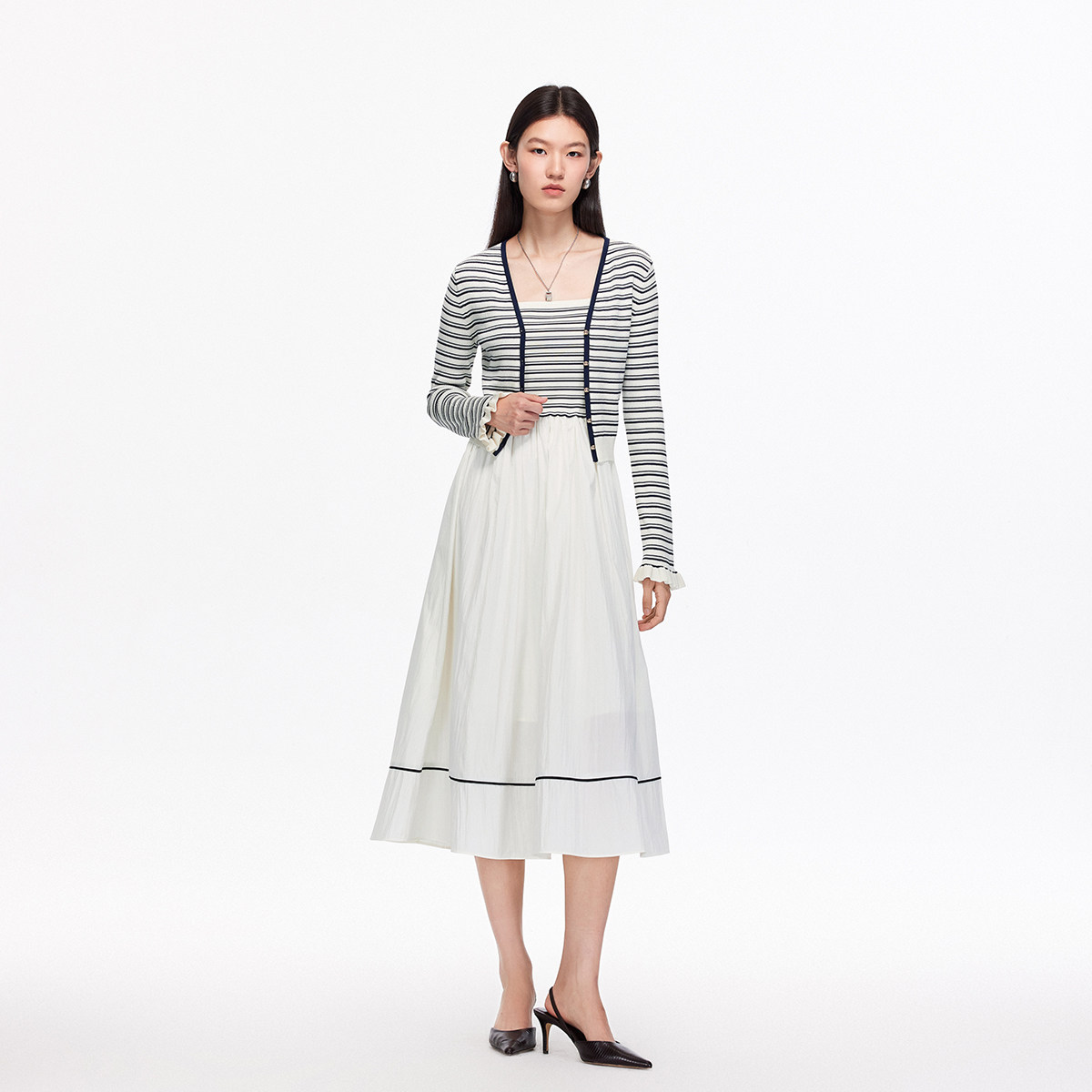 Vero Moda连衣裙2025秋淑女风套装条纹针织拼接A字裙325446019