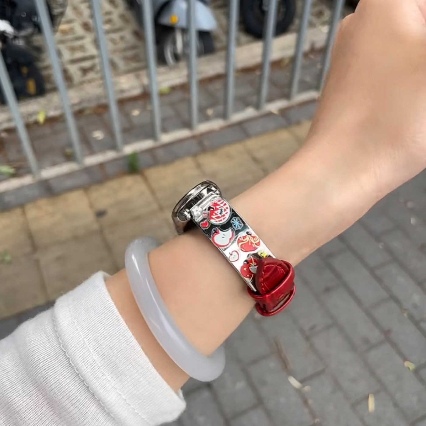 适用小米手环DIY弯片红苹果荔枝纹皮质表带