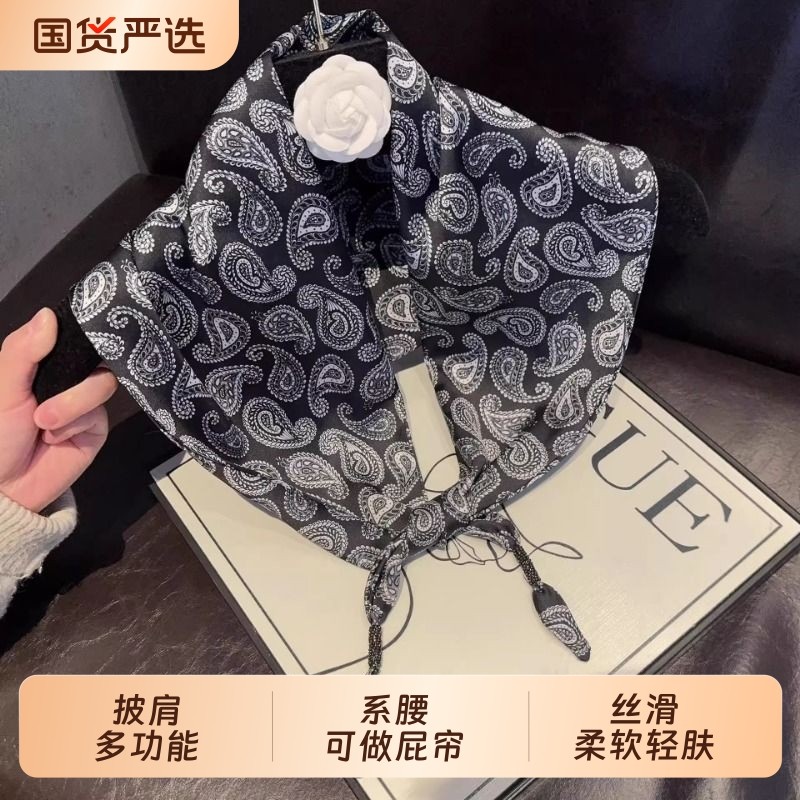 2025薄款三角巾时尚丝巾女小方巾春夏保暖围脖新款围巾系腰外搭