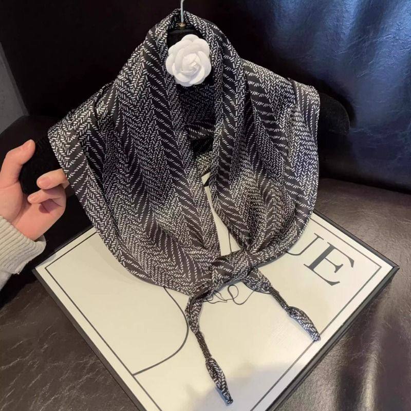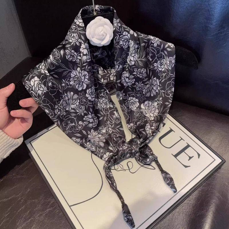 2024新款四季百搭长条小丝巾女薄款洋气高级黑白围脖领巾韩式围巾