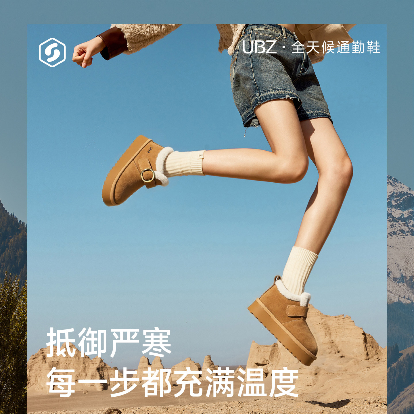 UBZ 短筒加绒厚底勃肯雪地靴女2025冬季新款保暖加厚增高东北棉鞋