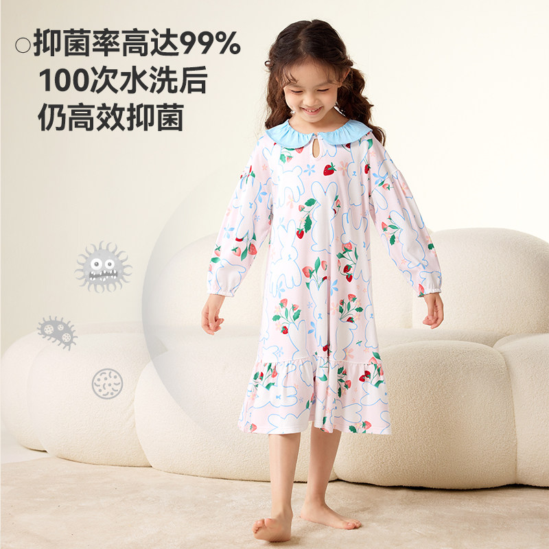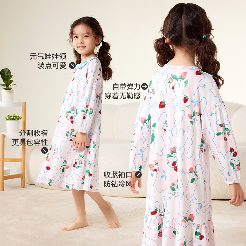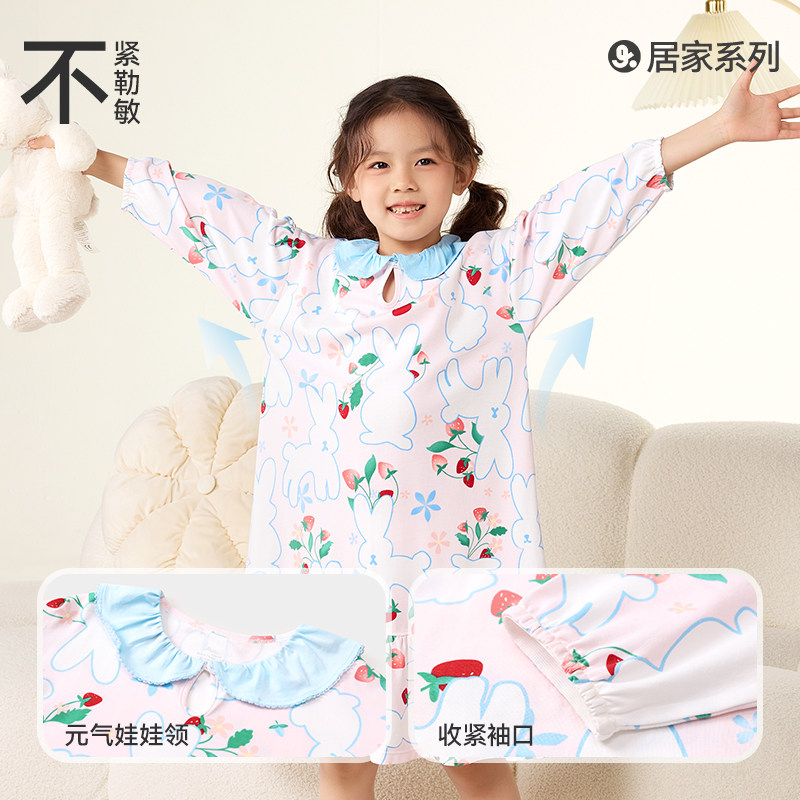 久岁伴女童睡裙春秋季新品薄款儿童公主长袖收口卡通兔子家居裙