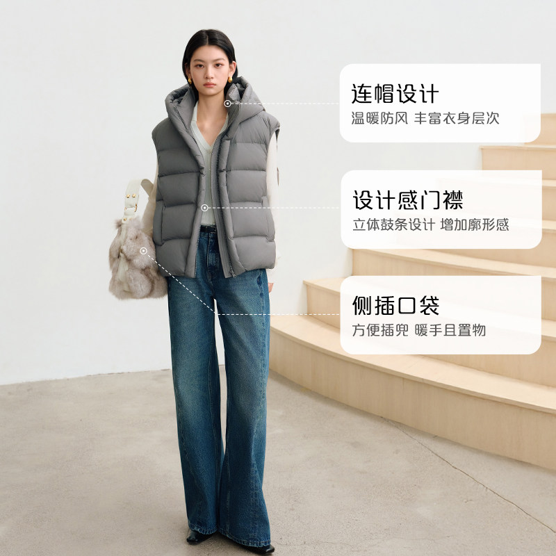 艾莱依百搭秋冬泡芙羽绒服女士连帽设计防风保暖宽松短款马甲外套