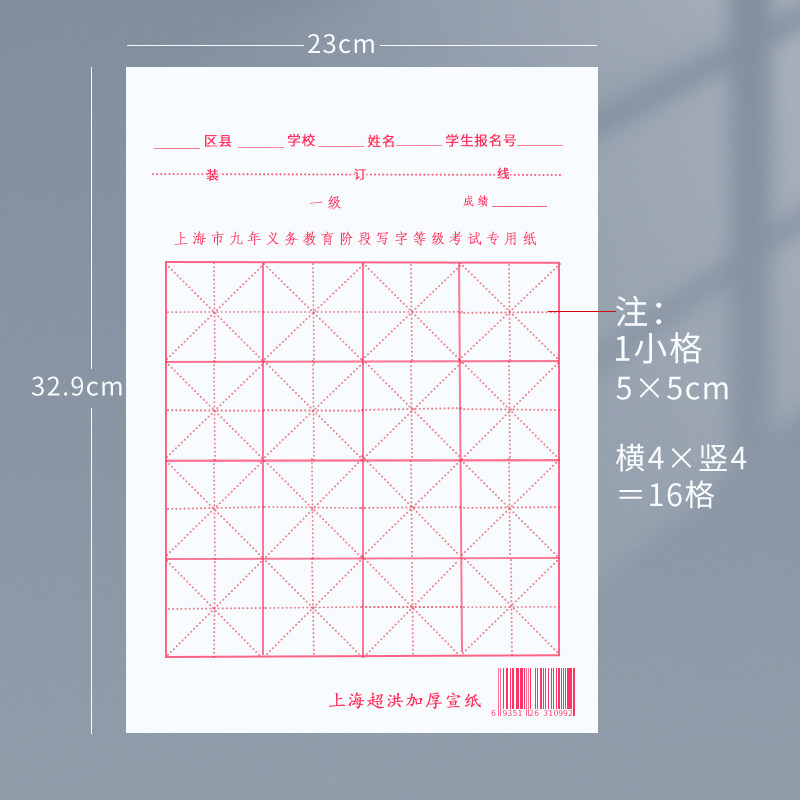 上海市九年义务教育阶段毛笔练字硬笔书法考级考试用宣纸软笔小学生写字等级毛笔字练习书写专用字帖初学入门