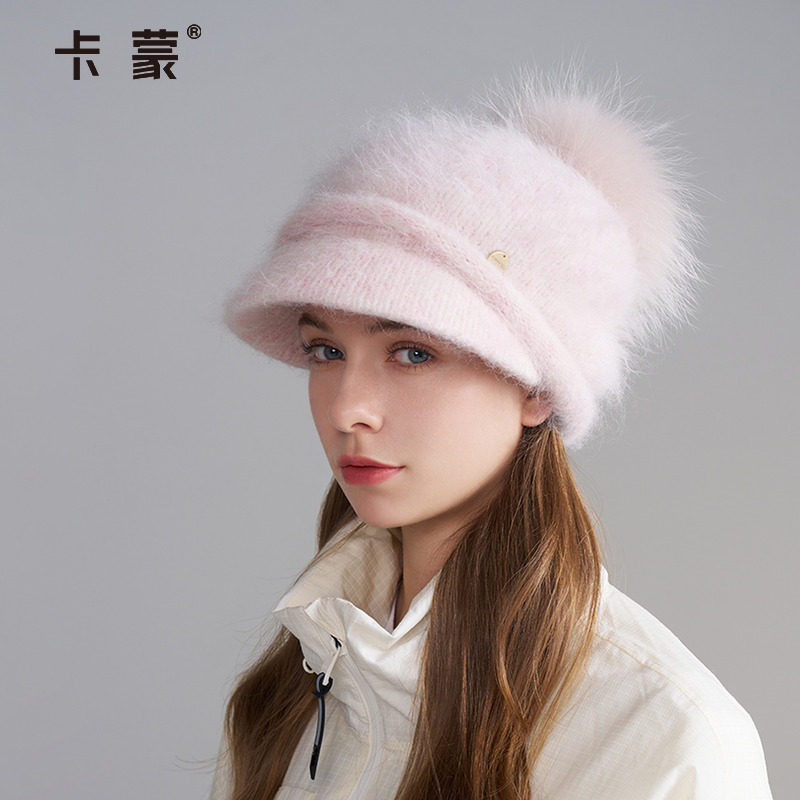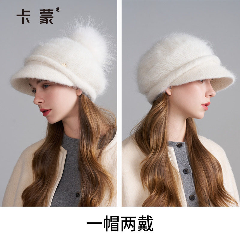 卡蒙羊驼毛编织褶皱云朵贝雷帽女显脸小舒适百搭毛线帽秋冬堆堆帽