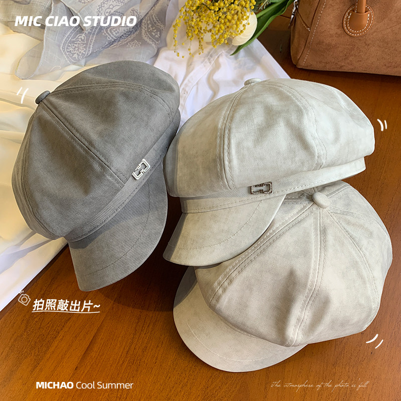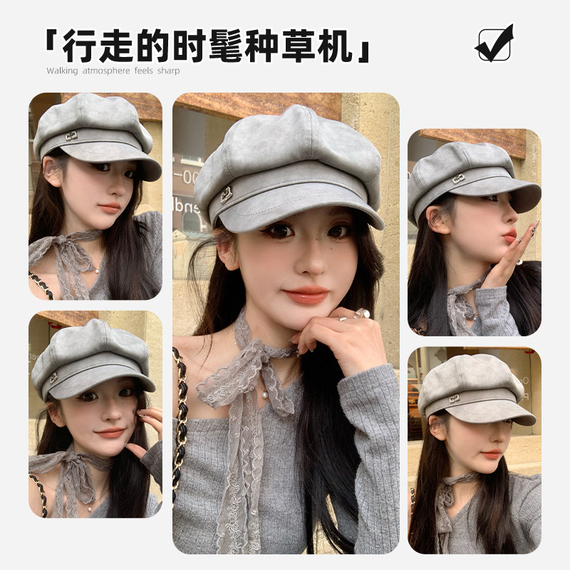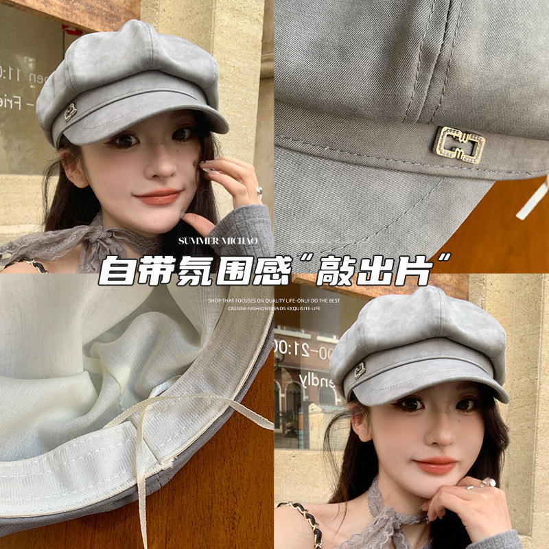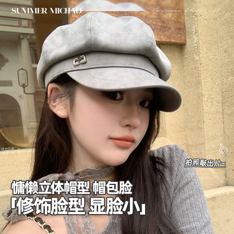 贝雷帽女八角帽2025新款春秋大头围显脸小鸭舌画家帽灰色白色黑色