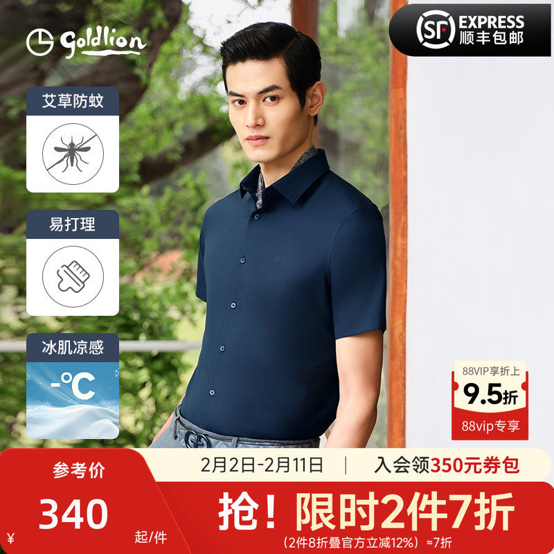 【防蚊凉感】金利来春夏新款男士正装衬衫尖领修身商务短袖衬衣男