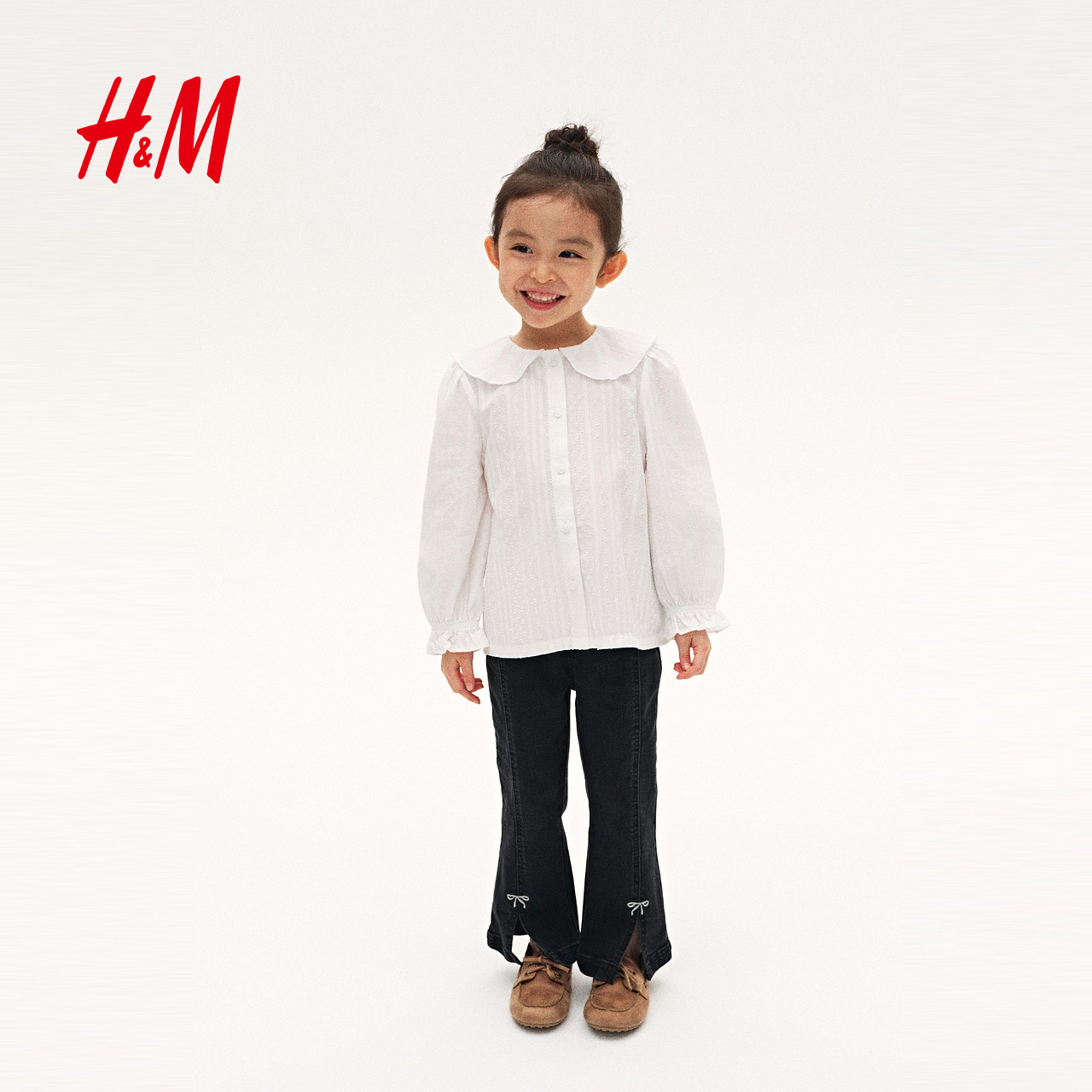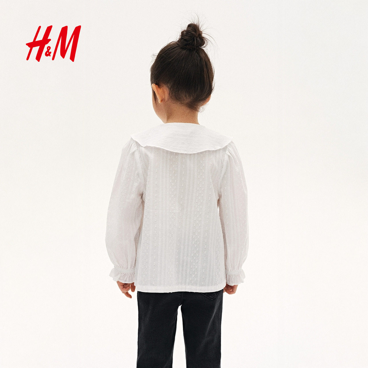 HM童装儿童女童衬衫春季长袖礼服演出服纹理感棉质上衣1306127