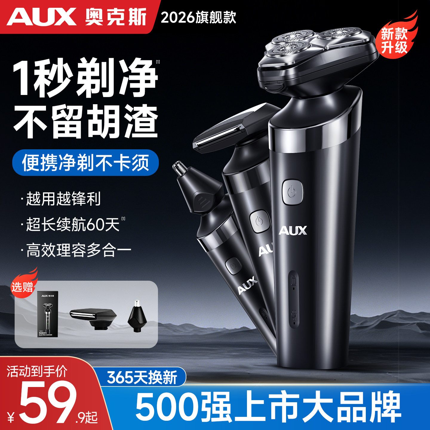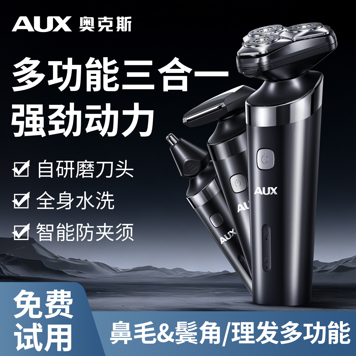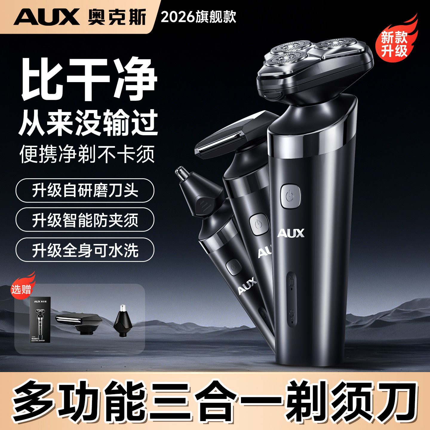 奥克斯剃须刀男士电动2026新款多功能刮胡刀智能三合一胡须刀便携