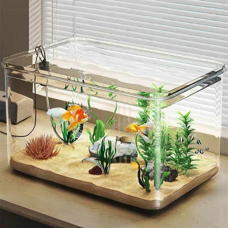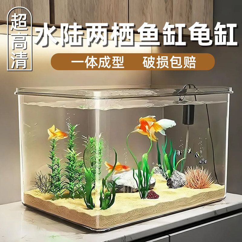 桌面鱼缸客厅小型金鱼乌龟缸混合饲养缸透明造景缸生态缸一体成型