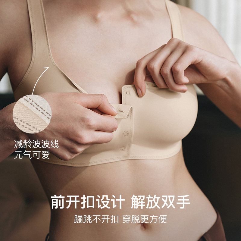润微一拉薄大胸显小内衣女薄款无痕前扣拉链提拉防下垂收副乳文胸