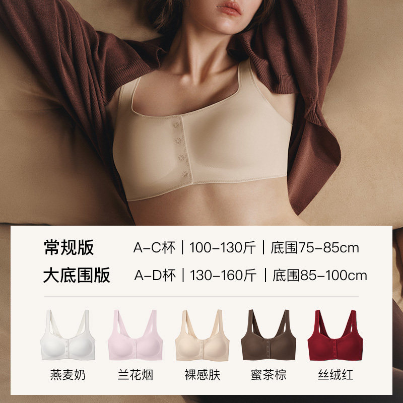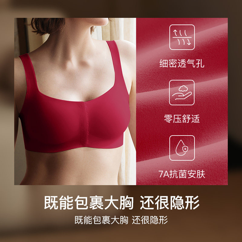 ubras无尺码前扣式无痕宽吊带文胸罩大码送礼妈妈红色内衣套装女