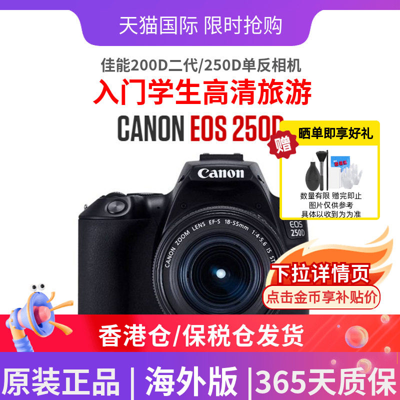 佳能200D二代/250D单反相机18-55套机入门学生高清旅游照相机
