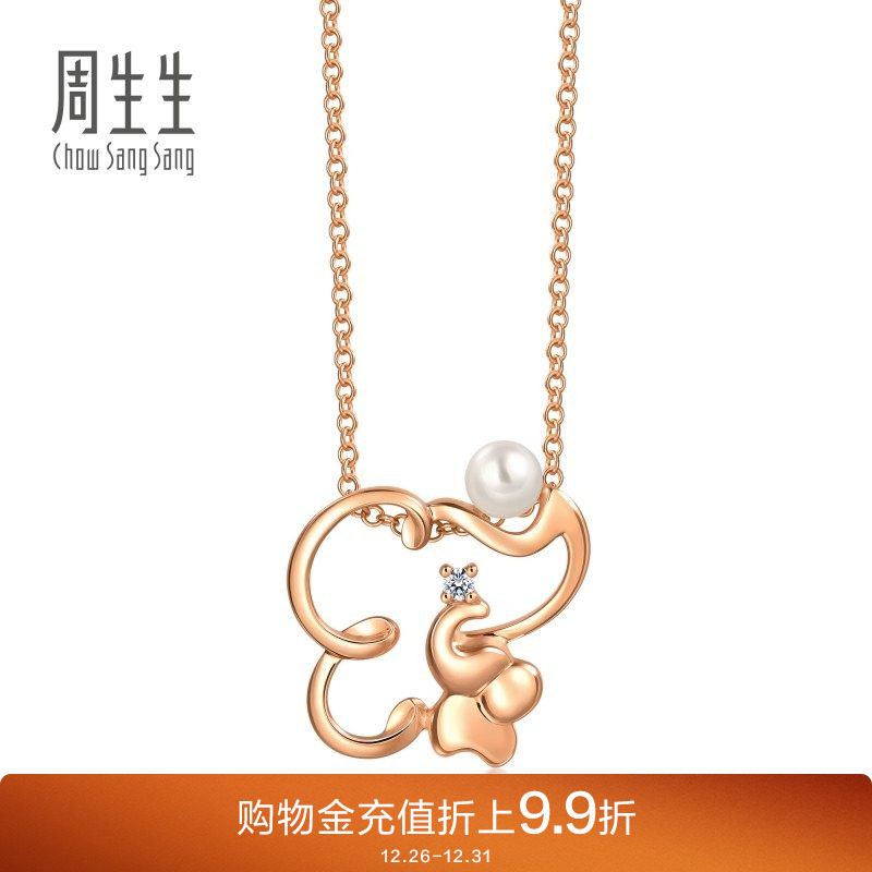 周生生18K玫瑰金Akoya珍珠母子大象项链套链91081U