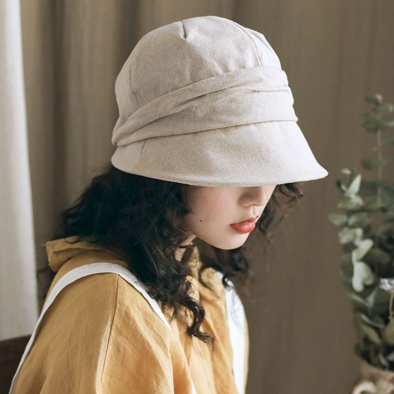 帽子女春夏季韩版文艺休闲鸭舌贝雷帽复古褶皱盆帽度假小沿凉帽潮