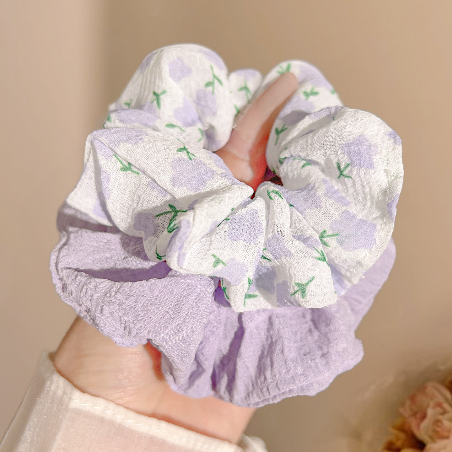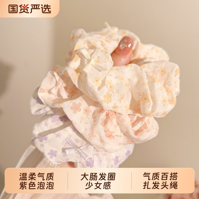 温柔气质紫色泡泡纱大肠发圈少女感气质百搭扎发头绳发绳头花发饰