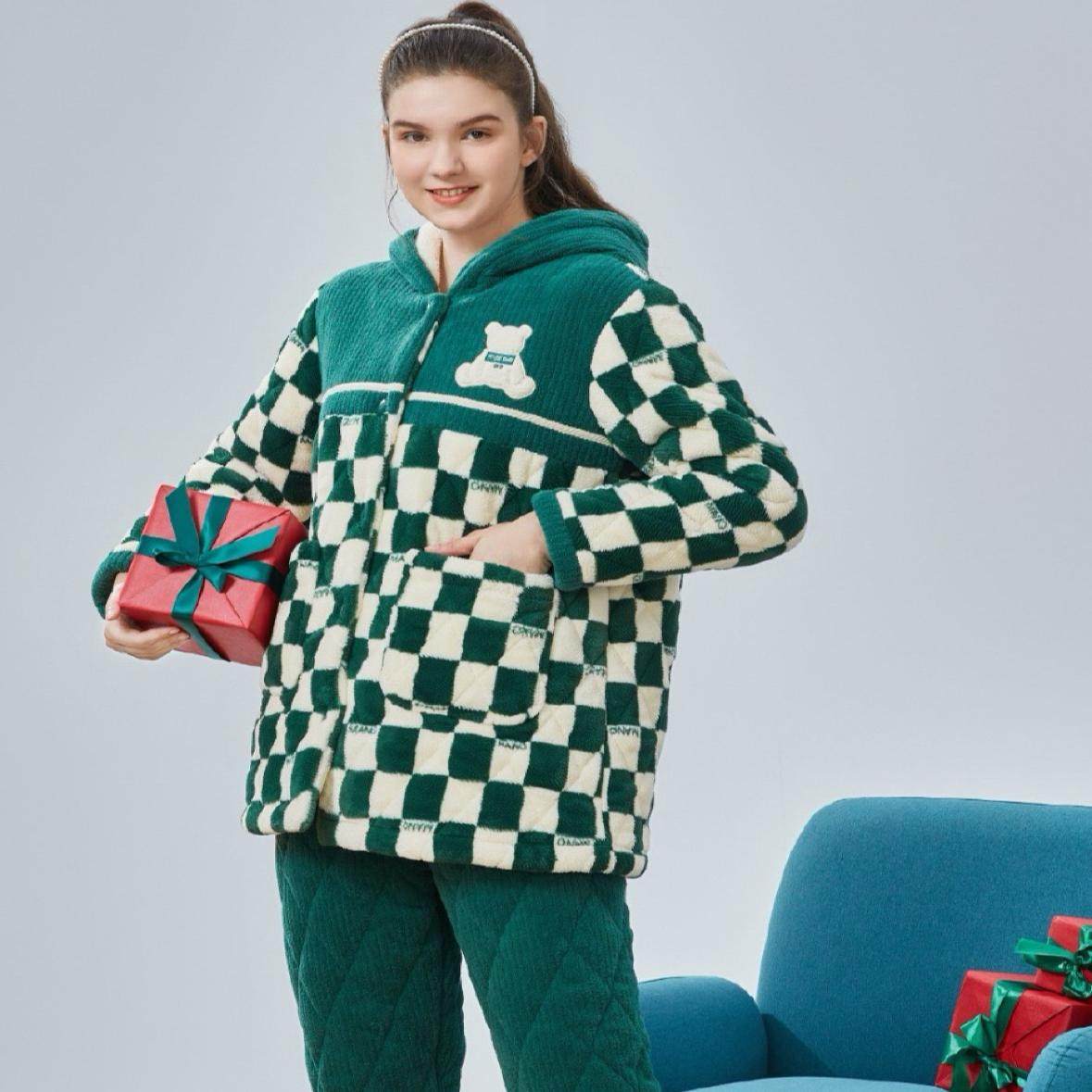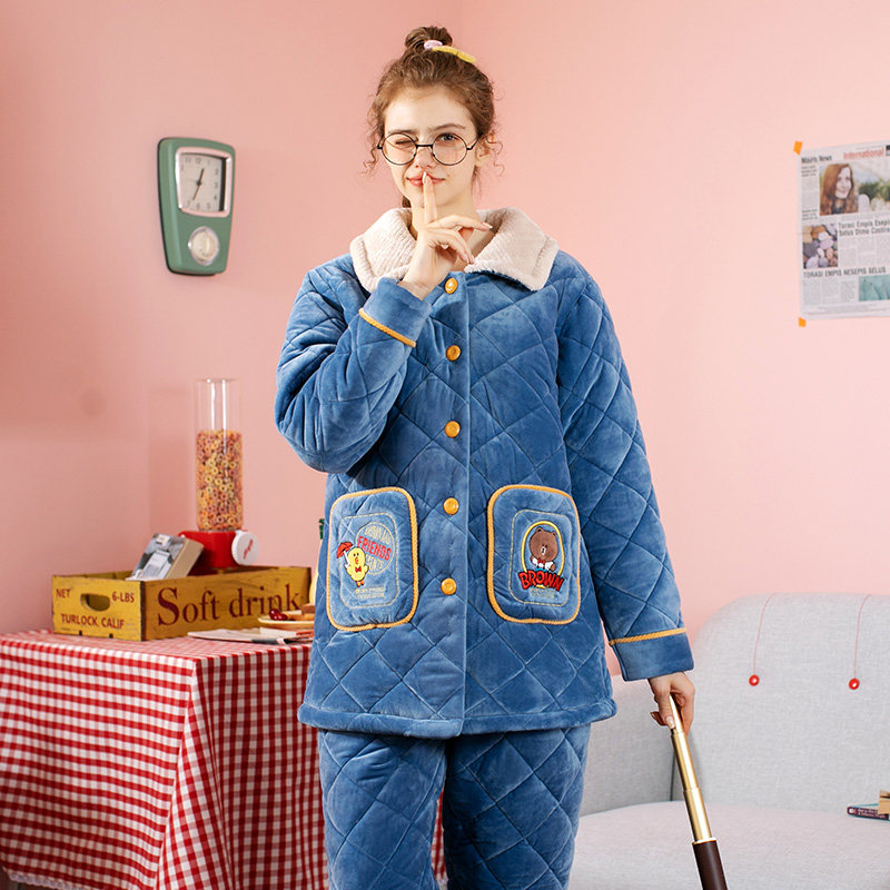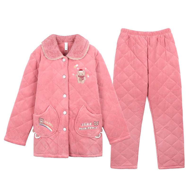 芬腾【特价清仓夹棉】冬季睡衣女士珊瑚绒夹棉加厚保暖家居服套装