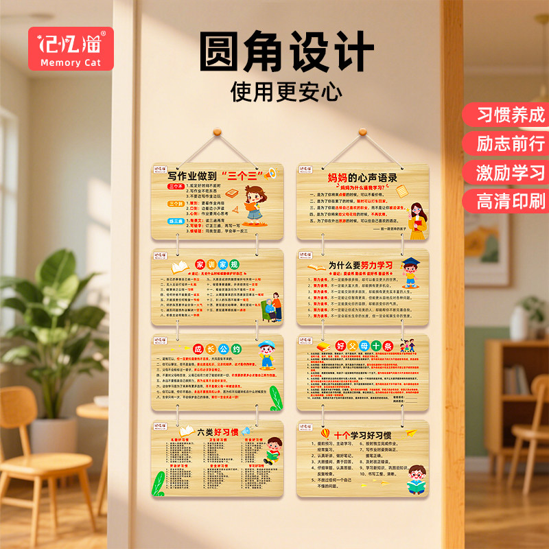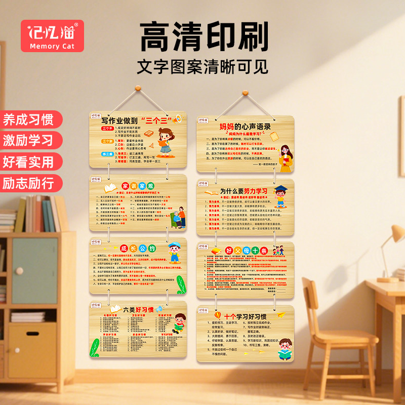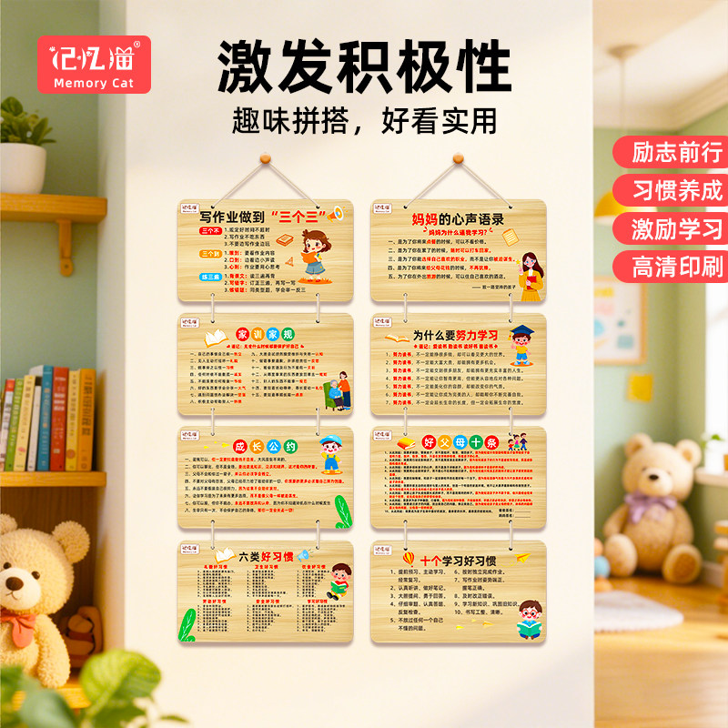 记忆猫励志摆件家规家训挂牌努力读书木纹挂牌挂件激励孩子自律标语