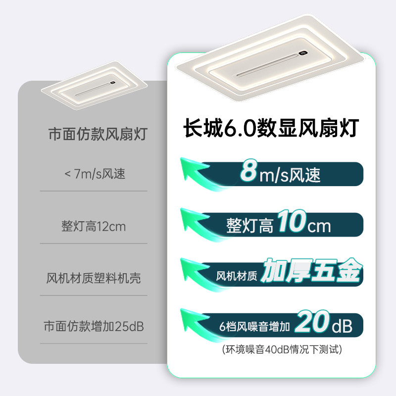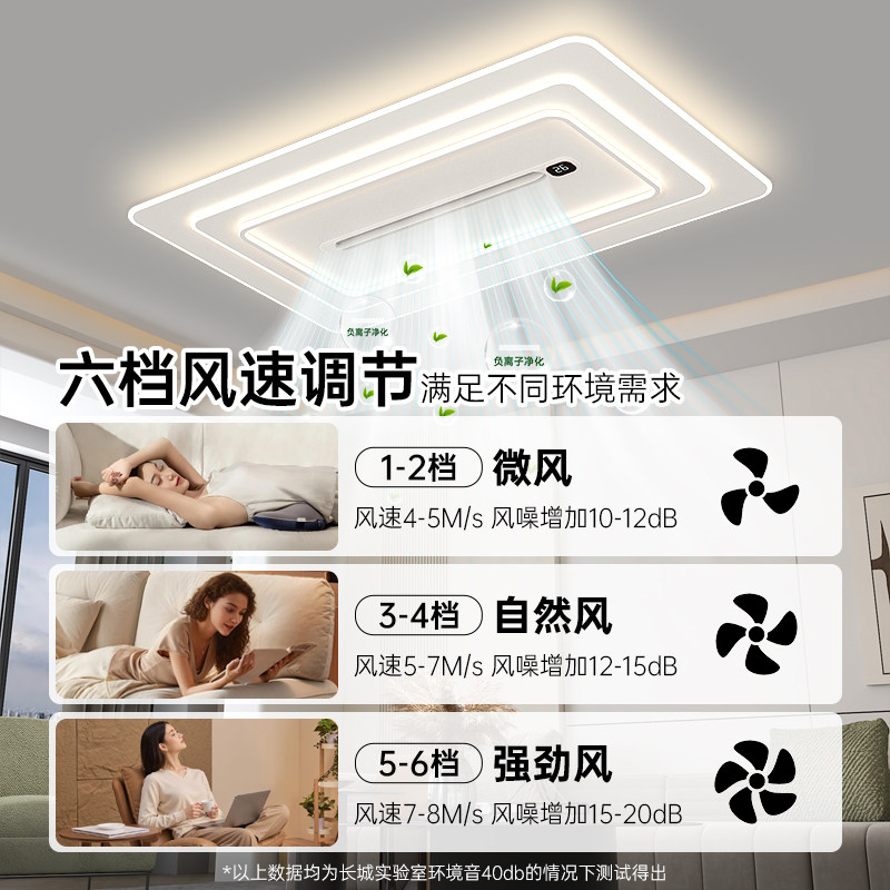 长城灯具客厅无叶风扇灯简约现代长方形吸顶灯隐形静音大厅电扇灯