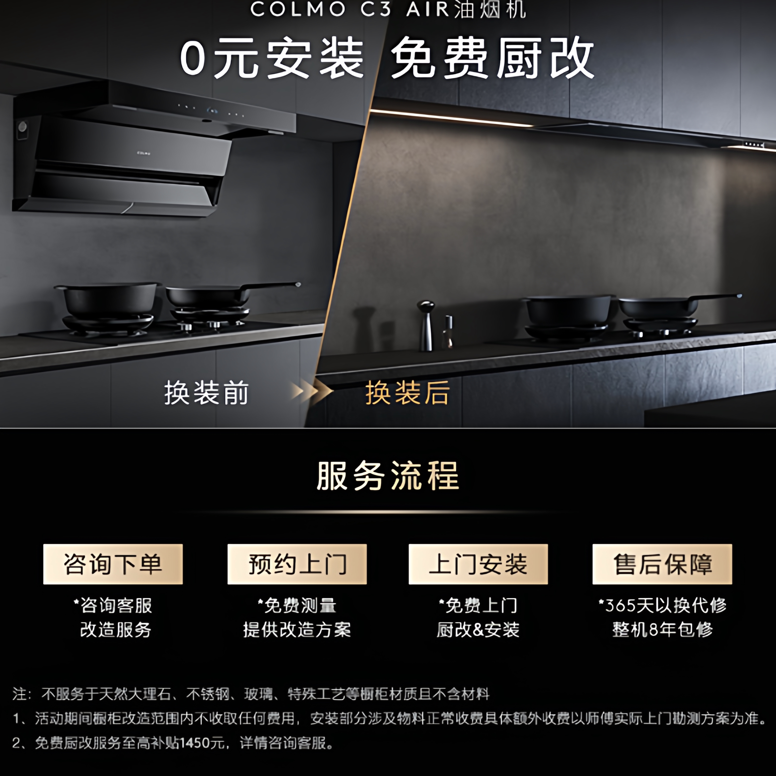 COLMO黑珍珠抽油烟机C3AIR家用厨房全隐全嵌30m³大吸力AI免调LX