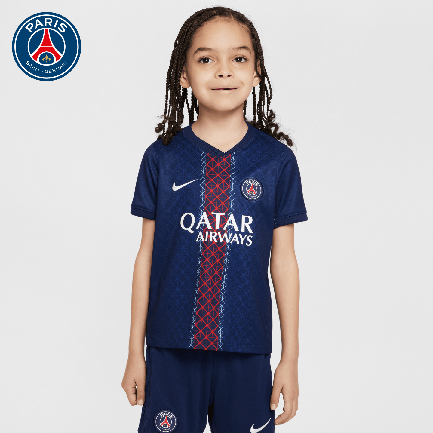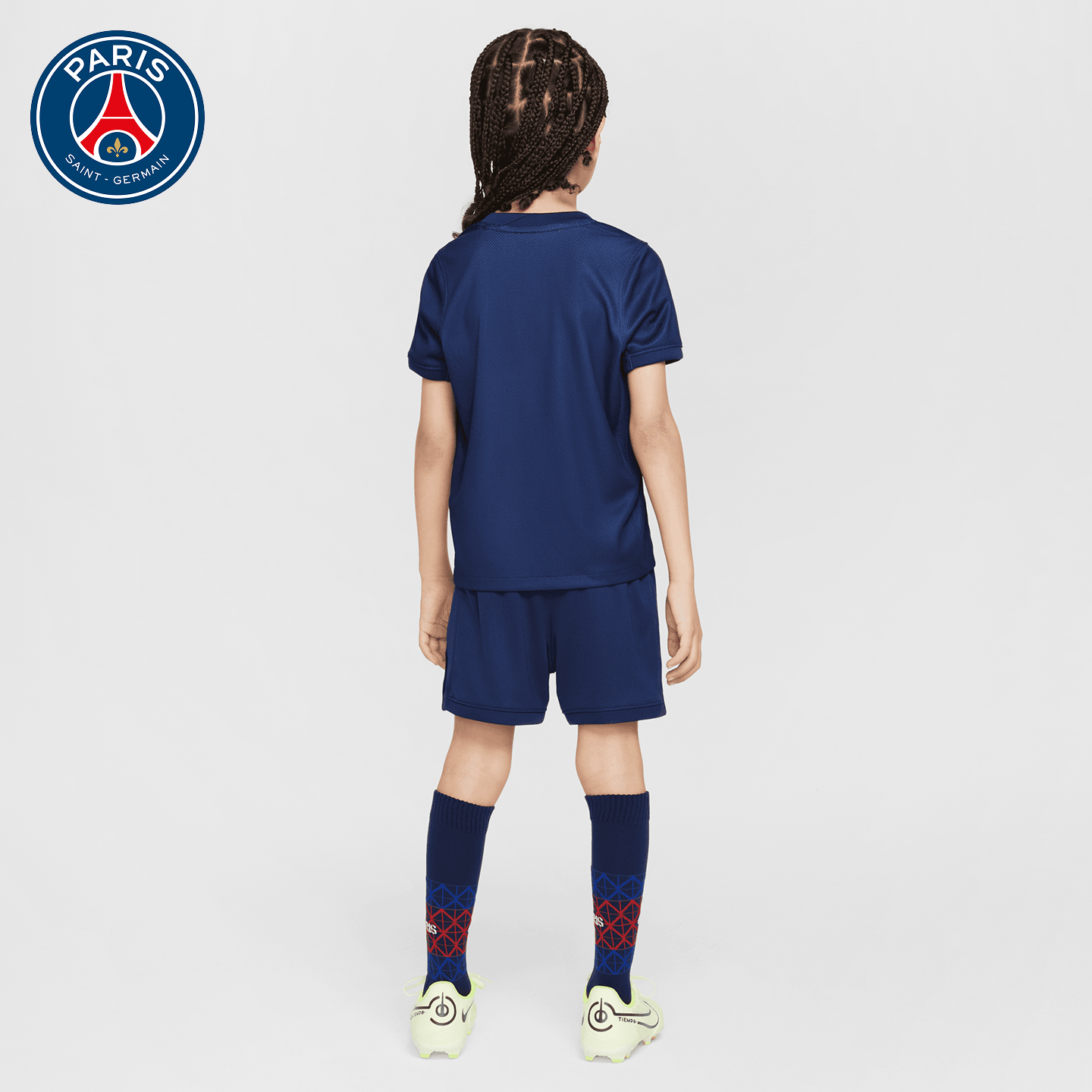 巴黎圣日耳曼25/26赛季主场幼童短袖短裤长袜足球速干训练服套装