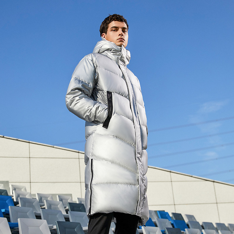 准者羽绒服长款男子2025冬季新款防泼水运动防风连帽保暖厚外套男