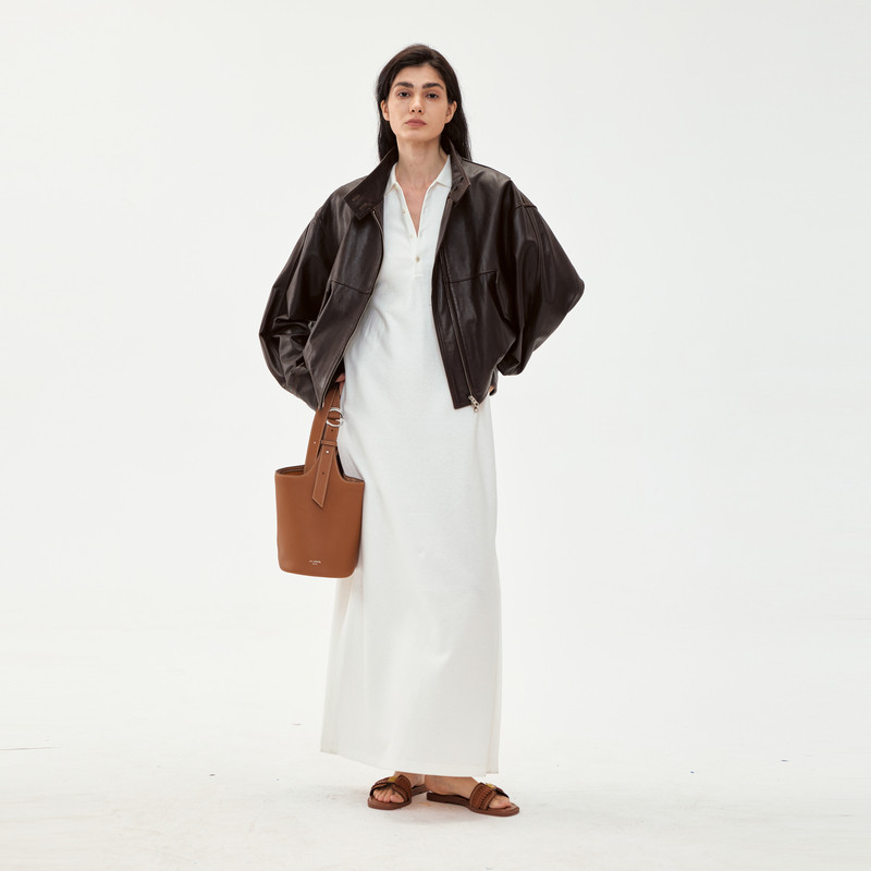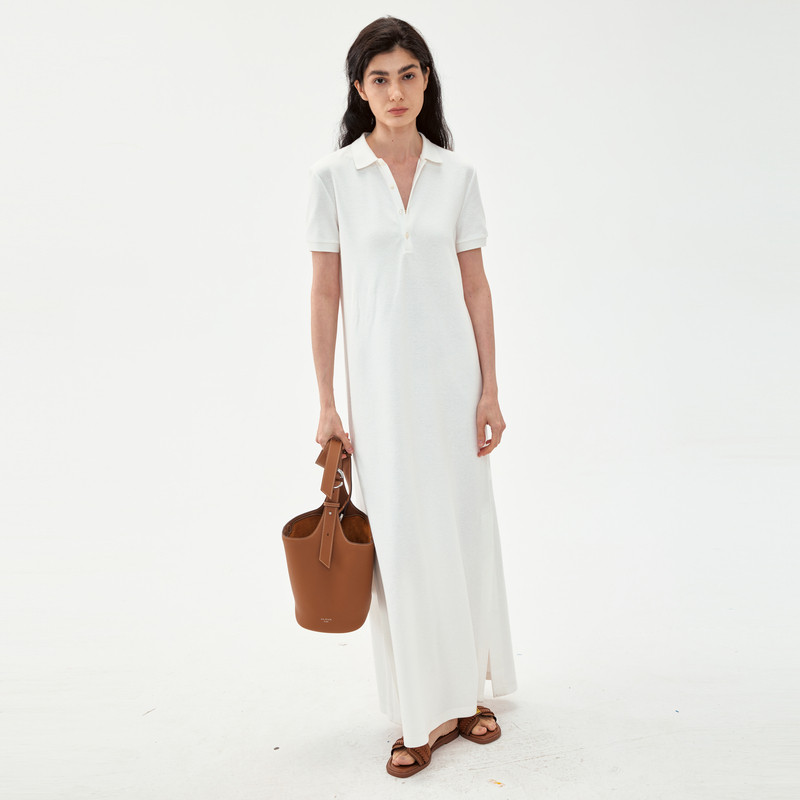 MISSCOCOON可可尼C3系列肌理亚麻棉POLO领纸片人长款直筒连衣裙女