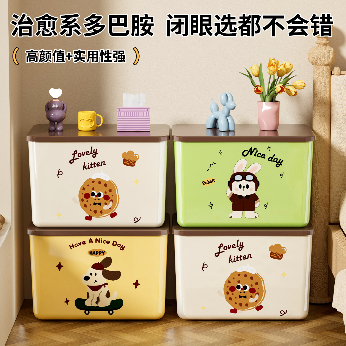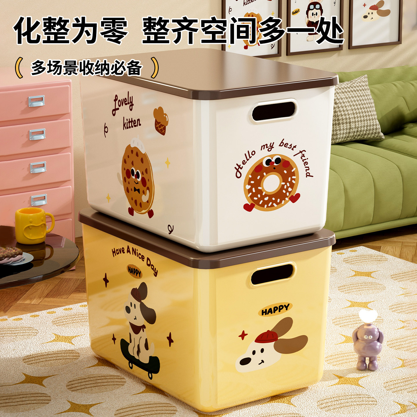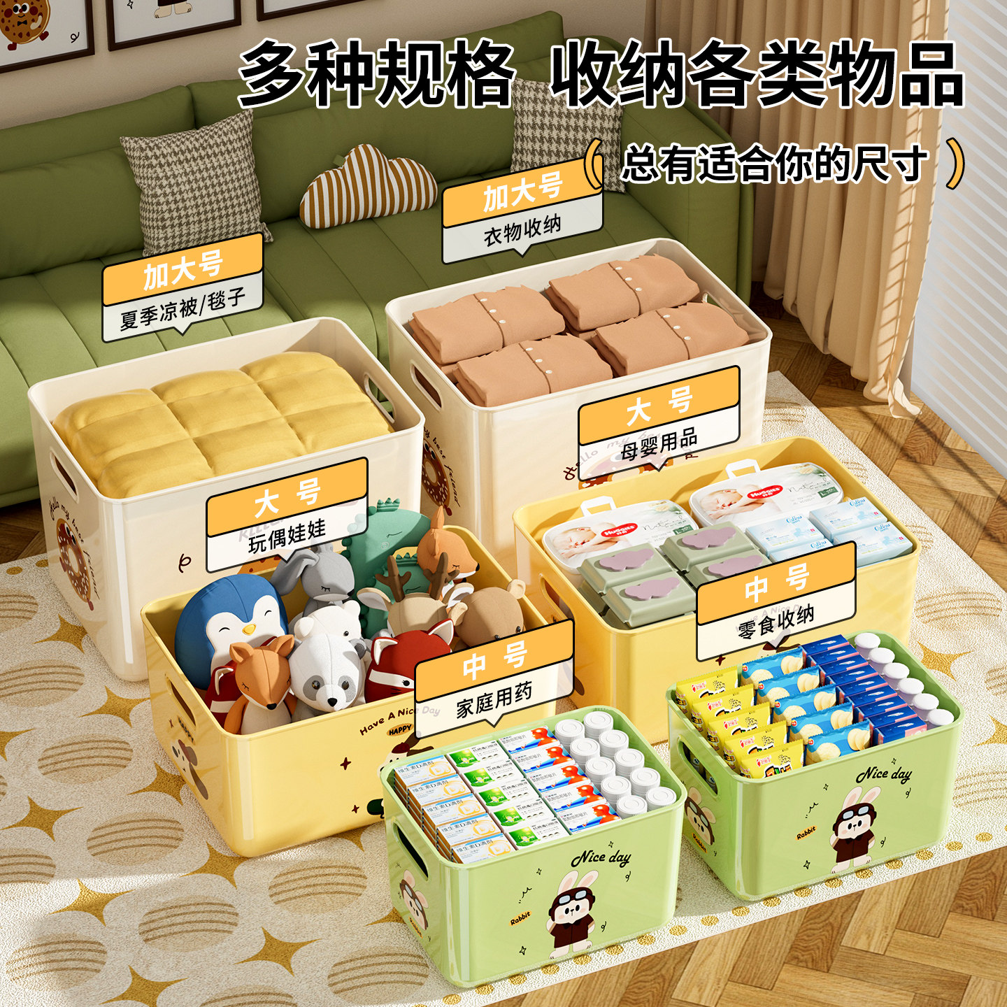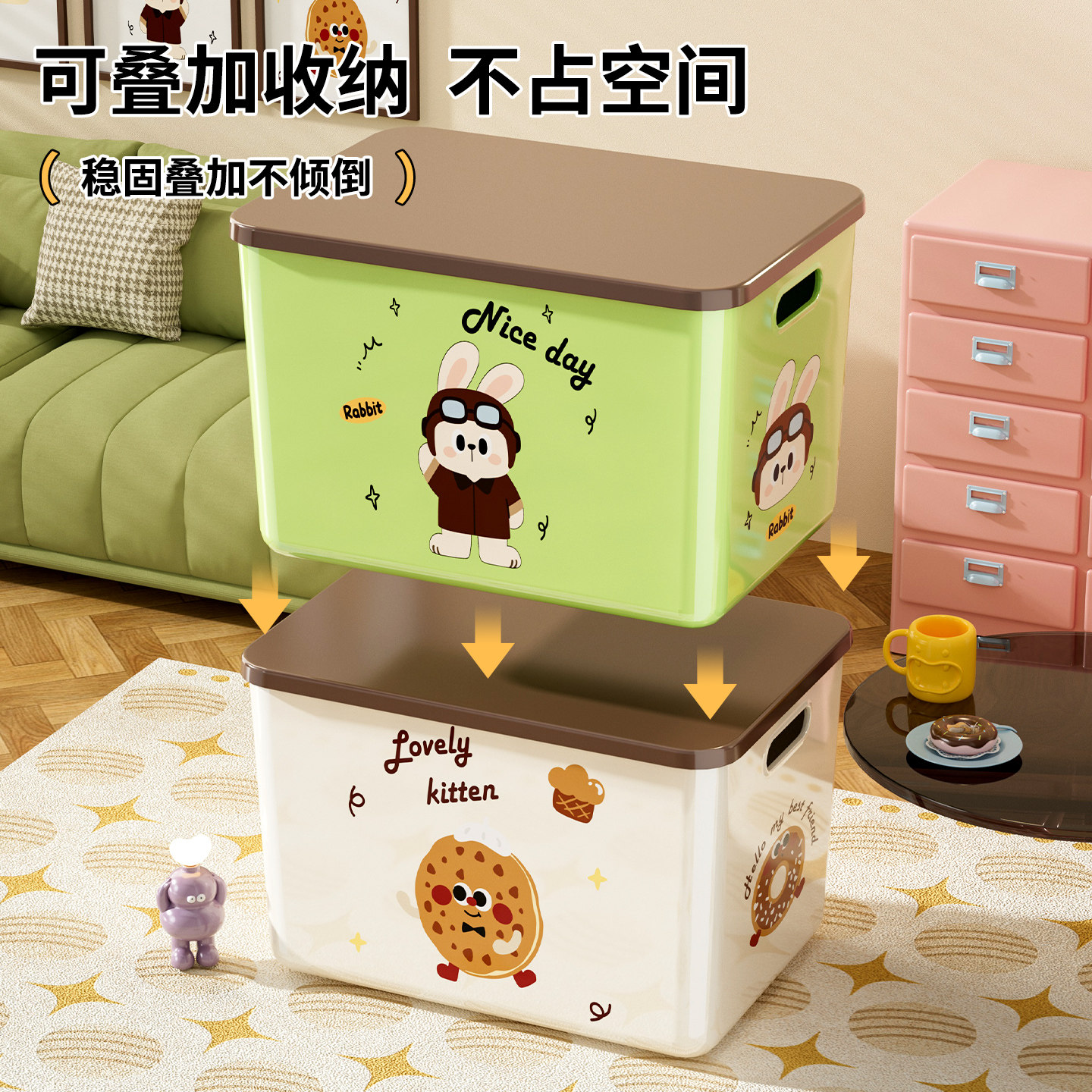 儿童收纳箱大容量收纳盒卡通玩具零食衣柜整理篮客厅家用塑料带盖