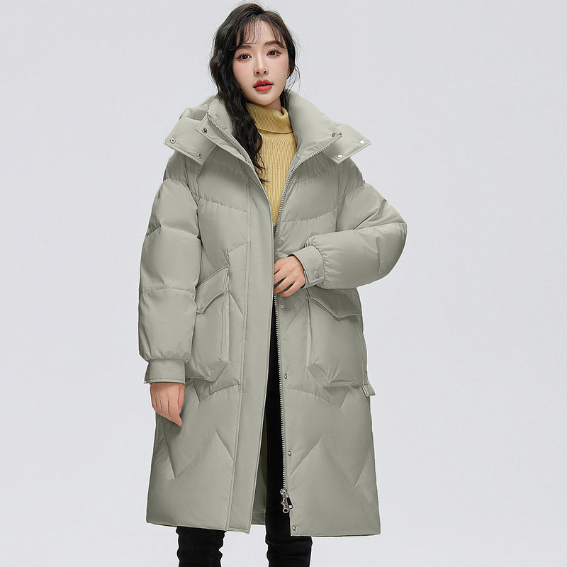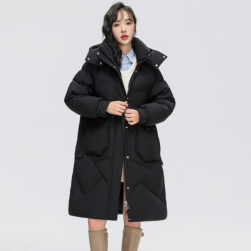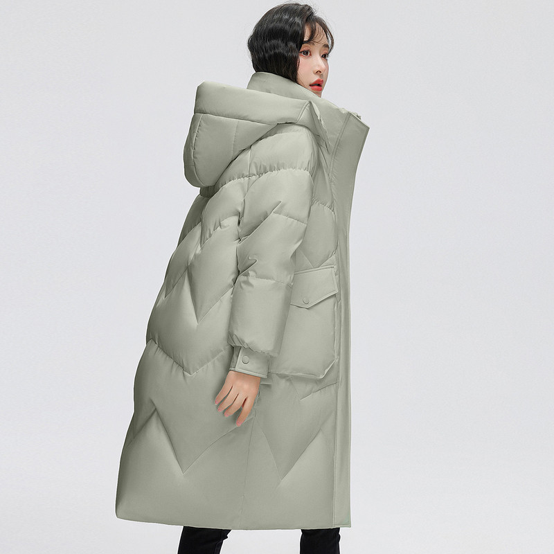 雪中飞2026秋冬新款女士中长款连帽羽绒服时尚纯色直筒显瘦廓形暖