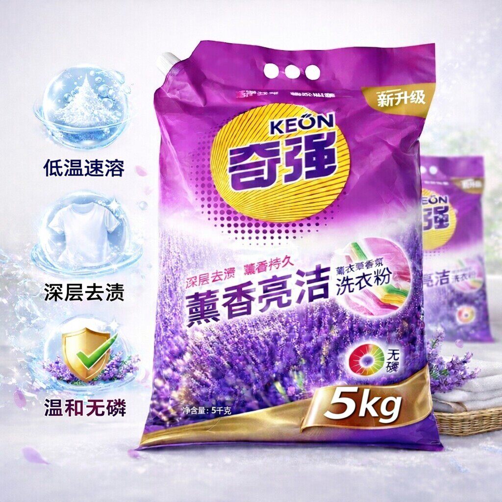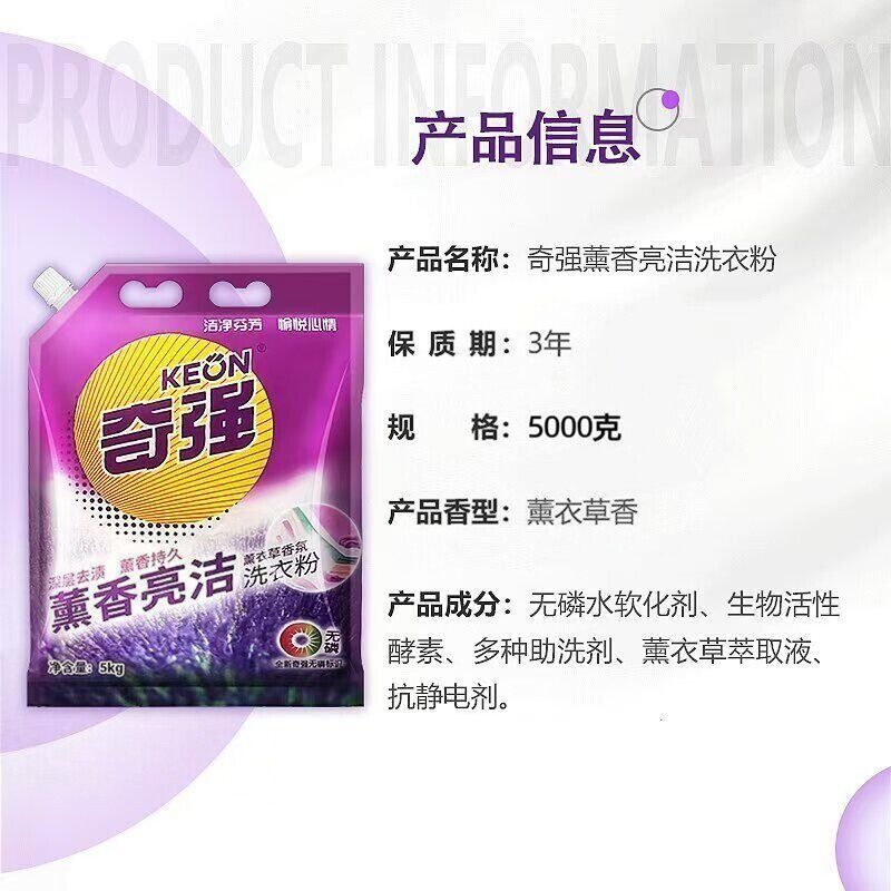 奇强洗衣粉5kg薰香薰衣草持久留香家庭装大袋家用去渍香氛速溶
