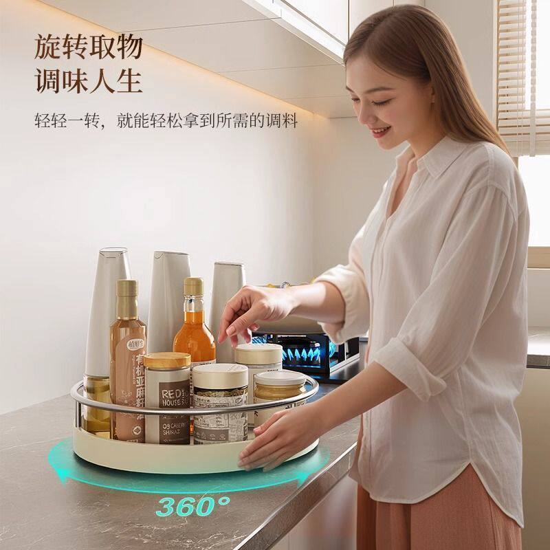 旋转式厨房转盘置物架厨房收纳玄关家用客厅水果盘厨房旋转调料架