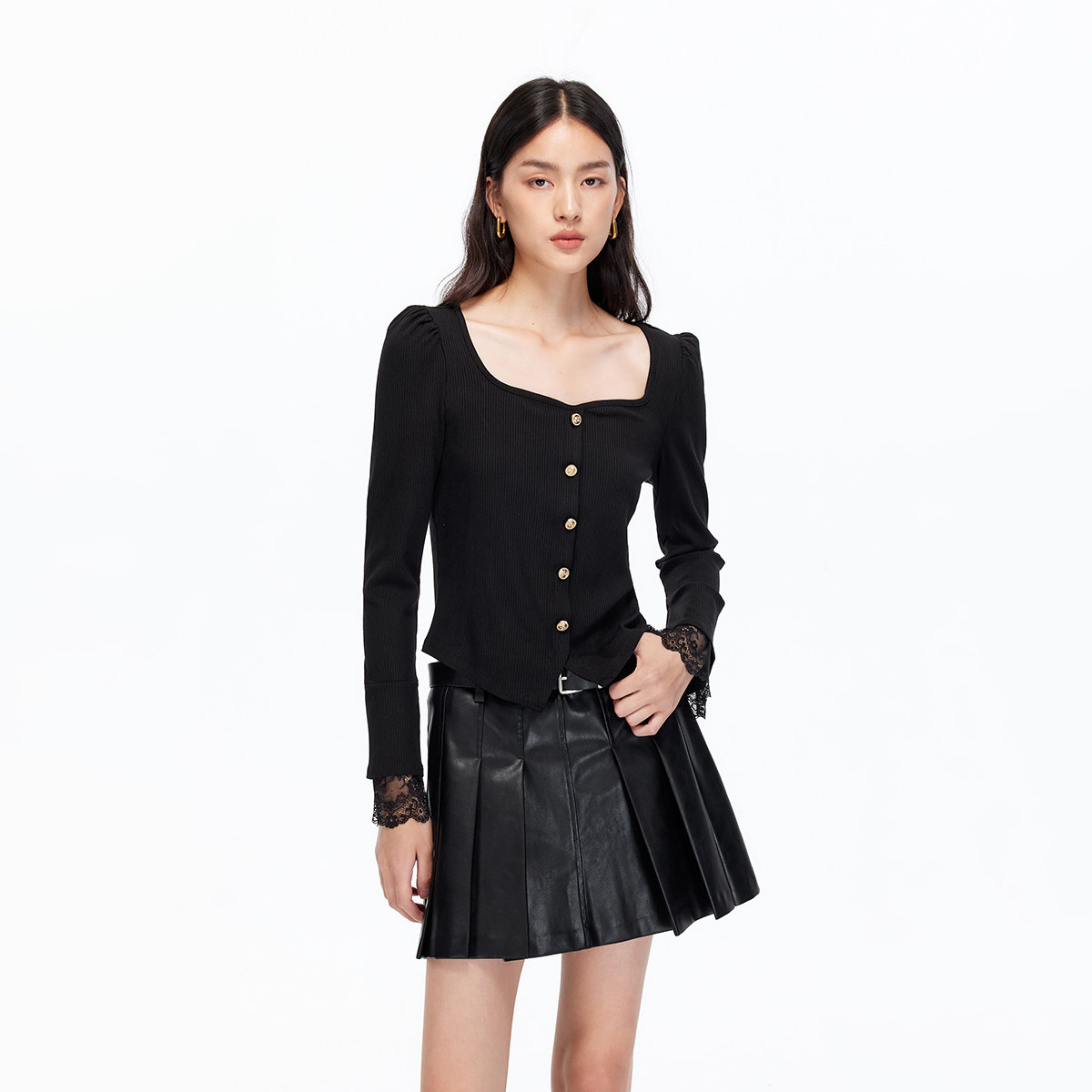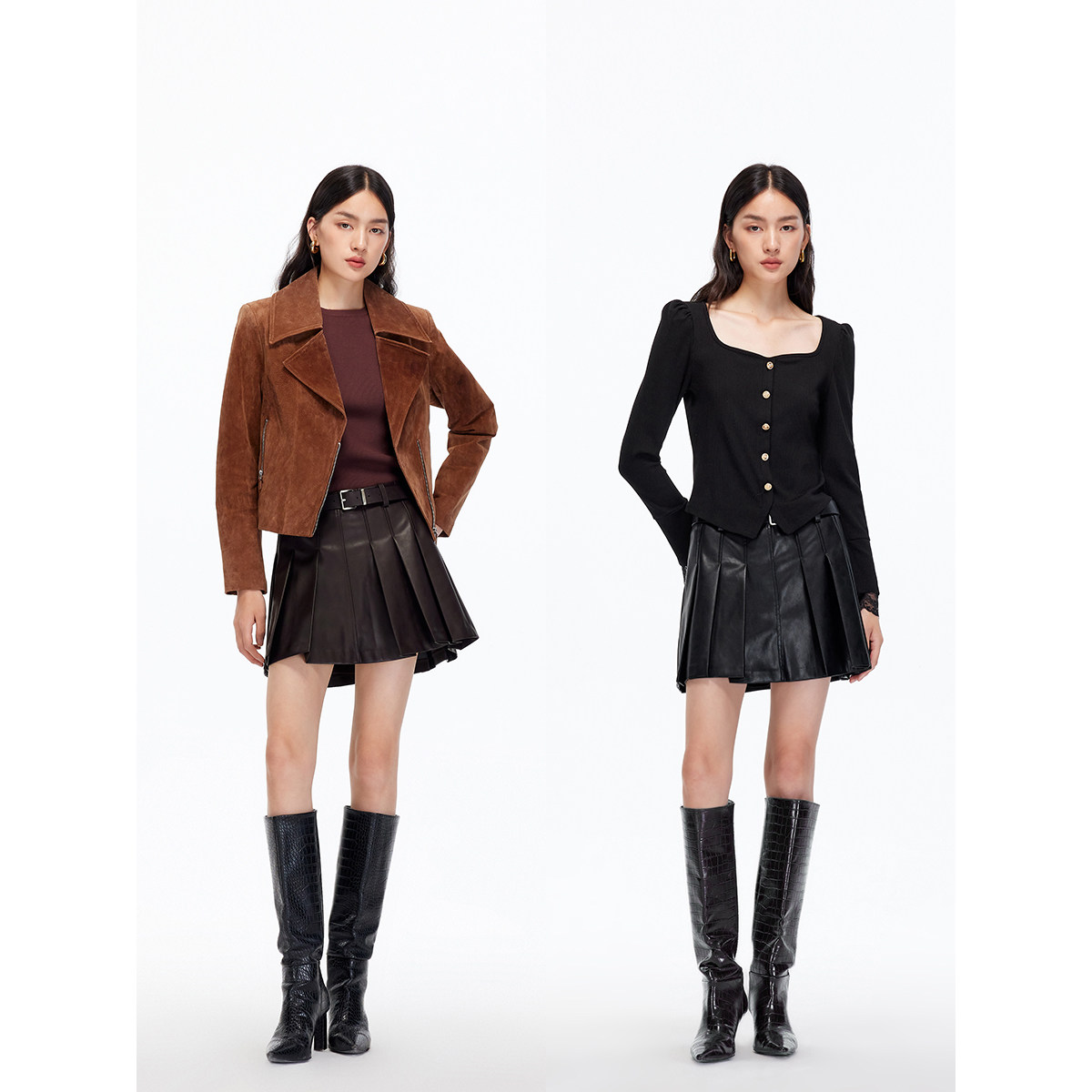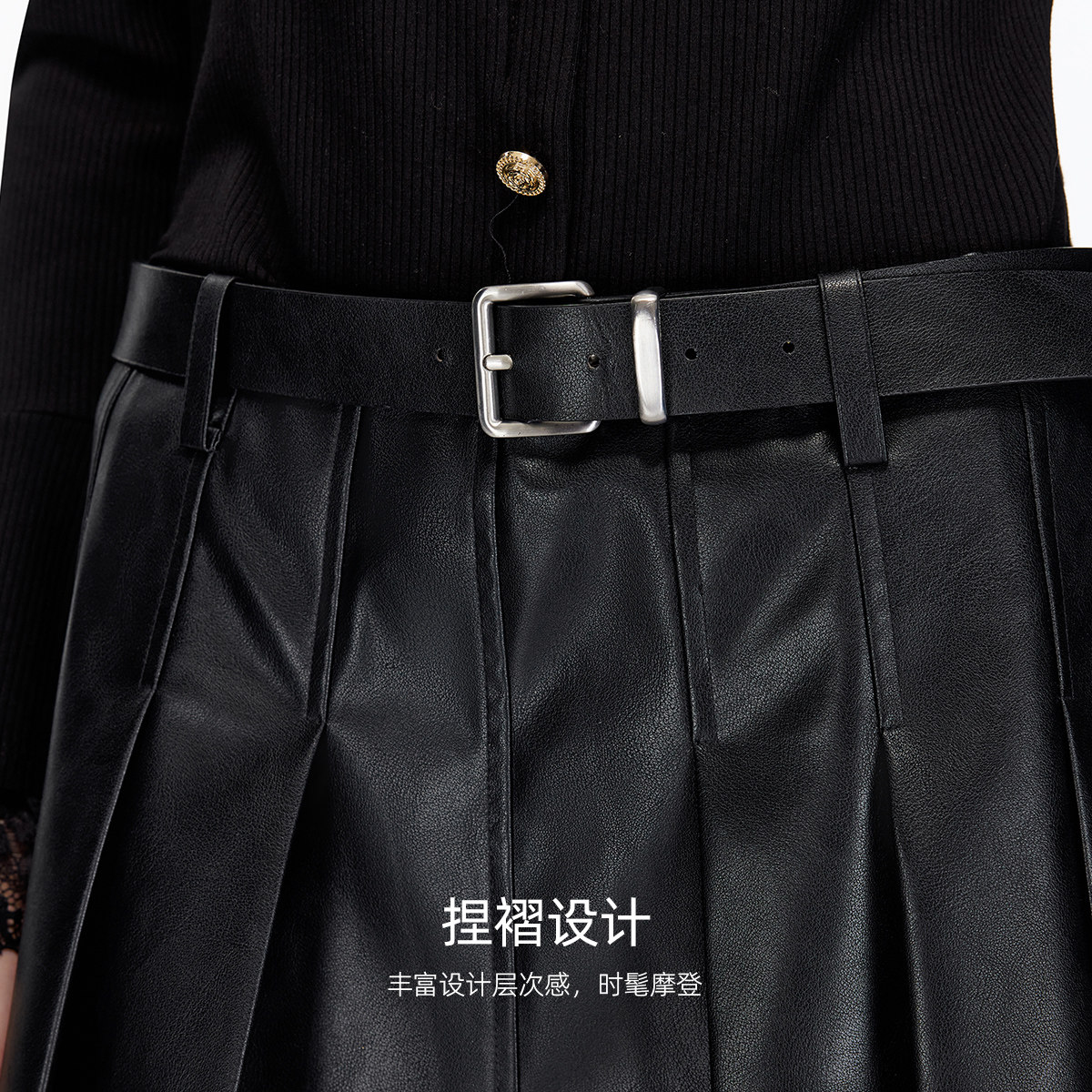Vero Moda半身裙2025秋季新款同色腰带PU百褶裙显高显瘦325316043