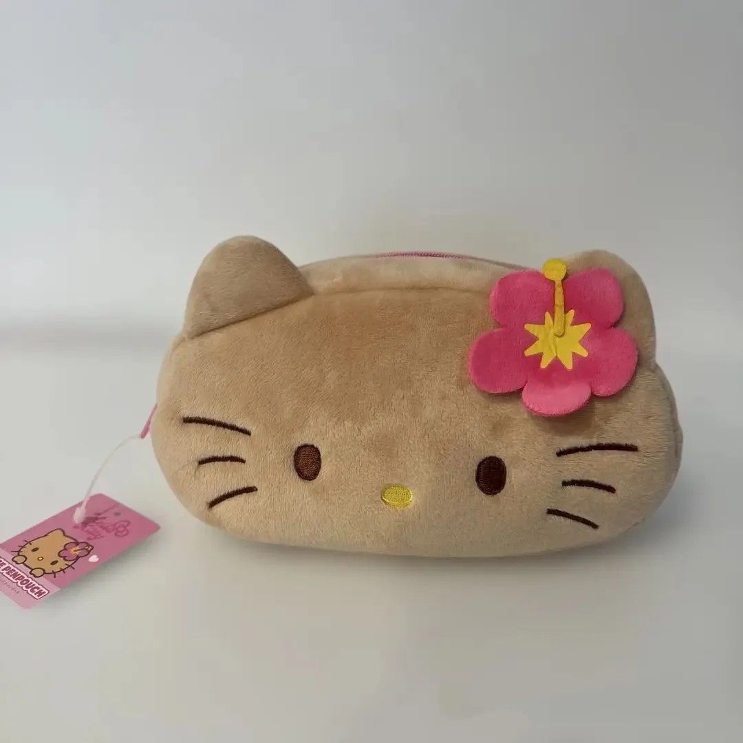 日系可爱黑皮夏威夷hellokitty收纳袋笔袋收纳包毛绒笔袋文具盒