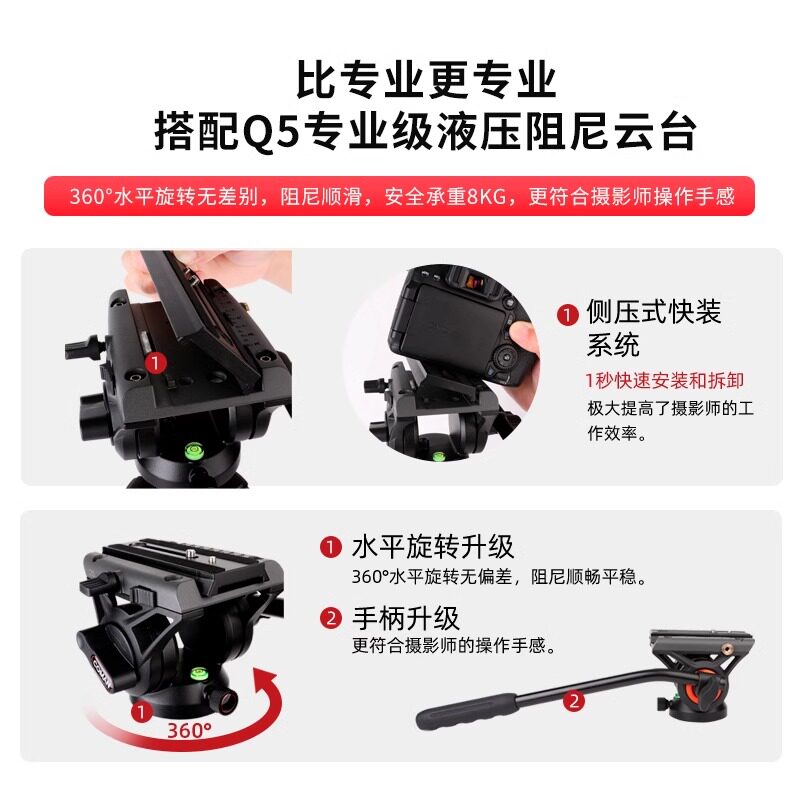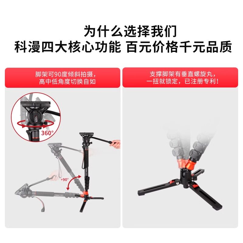 科漫单反摄像机独脚架微单专业单脚架摄影摄像婚纱录像支架液压阻尼云台碳纤维三脚架稳定器支架KX3535
