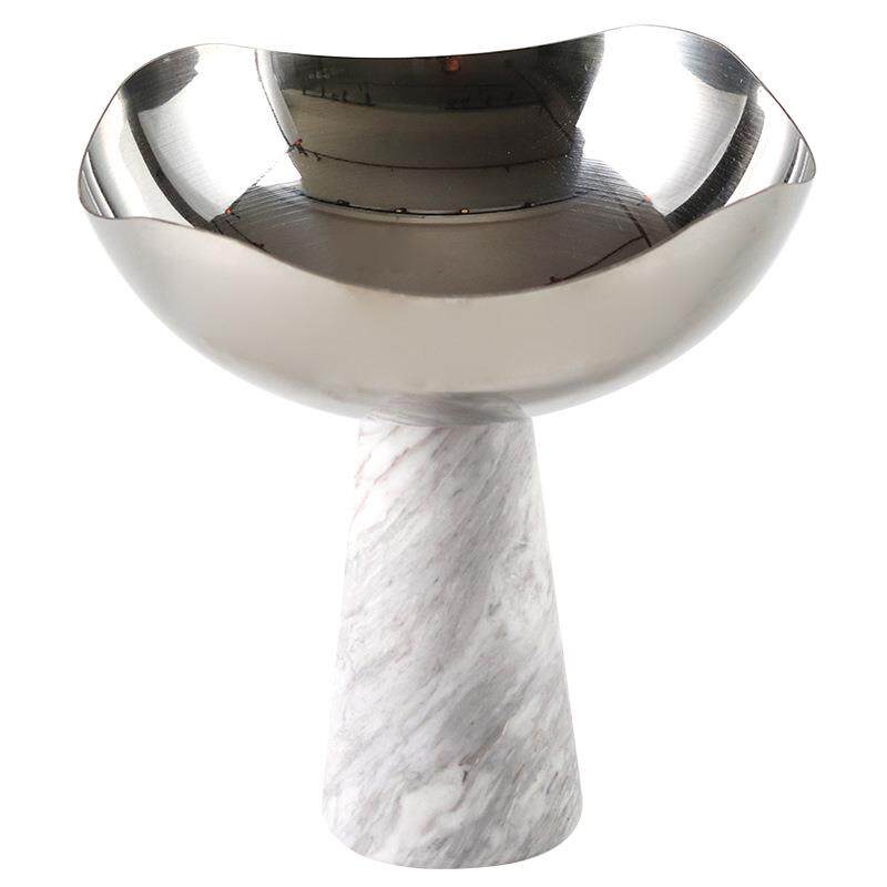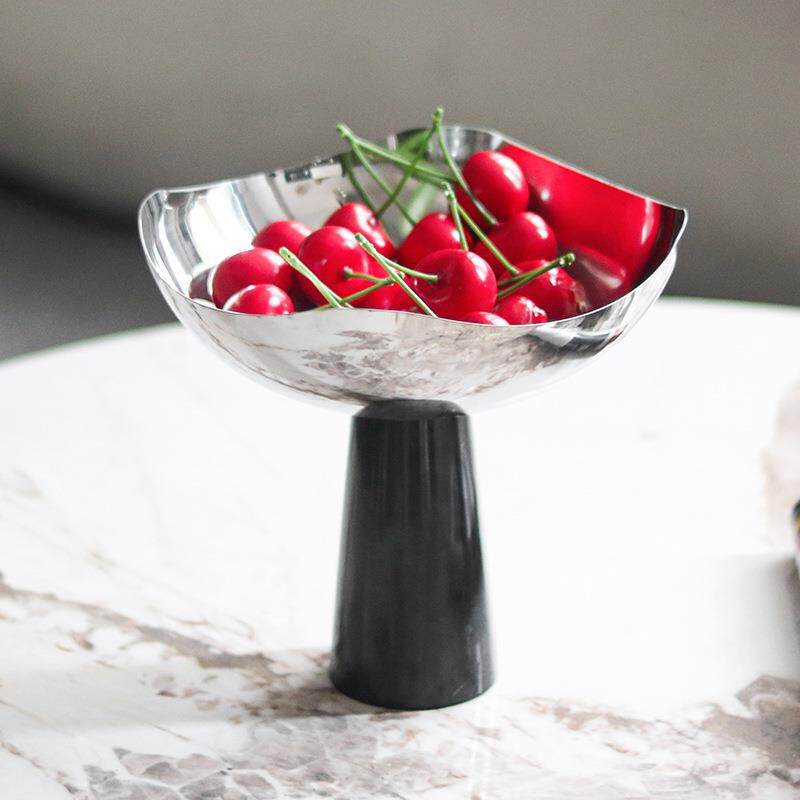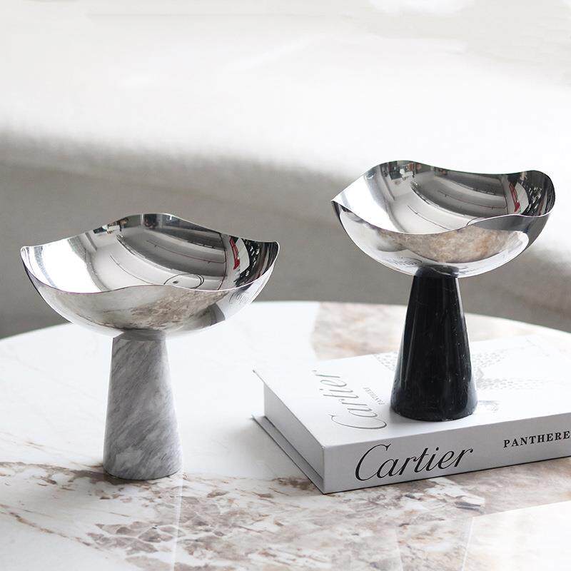现代轻奢高脚碗大理石果盘摆件创意艺术设计感别墅样板房软装饰品
